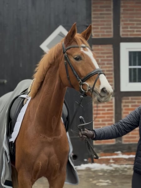 💎Daisy v. Damaschino - Royal Blend💎 Diese gerade 4-jährige, entzückende Fuchsstute ist ein wahrer Rohjuwel! Erst kurz unter dem Sattel, bringt sie täglich Freude 🥰 Kopfklar, immer lieb und absolut menschenbezogen zeigt sie drei gute Grundgangarten und eine erstklassige Rittigkeit. Die Mutter war siegreich von Dressurpferdeprüfungen bis S** Dressur. ⭐️⭐️ und hoch erfolgreich in Bundesnachwuchschampionaten( jetzt Children Tour auf L** Niveau) bei den Deutschen Meisterschaften und 2020 im Finale der Landesmeisterschaften bei den Jungen Reitern ( auf S* Niveau). Inzwischen ist sie aufgrund Ihrer Erfolge Leistungsstute Dressur. Daisy ist eine absolute Empfehlung für die Zukunft! Ein guter Röntgentüv inkl. Rücken liegt vor. Bei Interesse gerne unter 01724428863 melden! *Verkauf im Auftrag*