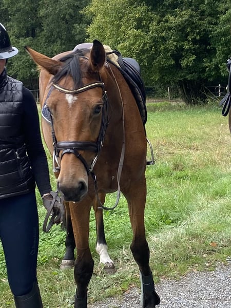Verkaufe elegante Hannoveraner Stute – Perfekt für Dressur! Zum Verkauf steht eine wunderschöne braune Hannoveraner Stute, geboren im Jahr 2022. Mit einem Stockmaß von 166 cm vereint sie Größe und Anmut. Sie ist ideal für den Dressursport und zeigt viel Talent sowie Lernbereitschaft. Die Stute ist gesund, gut angeritten und besitzt ein freundliches Wesen. Ein echtes Schmuckstück für ambitionierte Reiterinnen und Reiter, die eine zuverlässige Partnerin suchen. Aktuell wird sie aufgrund von Zeitmangel nicht geritten. Videos unter dem Sattel können verschickt werden. Daher ist ein ausprobieren nicht möglich. Bei Interesse oder für weitere Informationen stehe ich Ihnen gerne zur Verfügung!