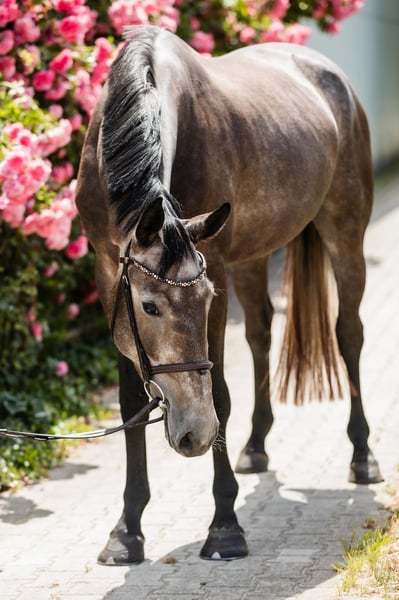 Elegant Hanoverian mare, born in 2022, with an impressive stature and a promising future. This young mare presents herself in a refined grey coat and stands at 166 cm, making her an ideal partner for ambitious riders. Thanks to her excellent jumping ability, she already displays natural responsiveness and a good sense of rhythm, indicating a promising career in show jumping. She is well-trained, attentive, and eager to learn, making her a promising investment for building a successful competition career. This Hanoverian mare combines elegant conformation with great potential and a friendly, attentive nature. Ideal for riders seeking a talented young prospect who can develop further in both jumping and training. Is currently preparing for his first starts under saddle, video available on Whatsapp.