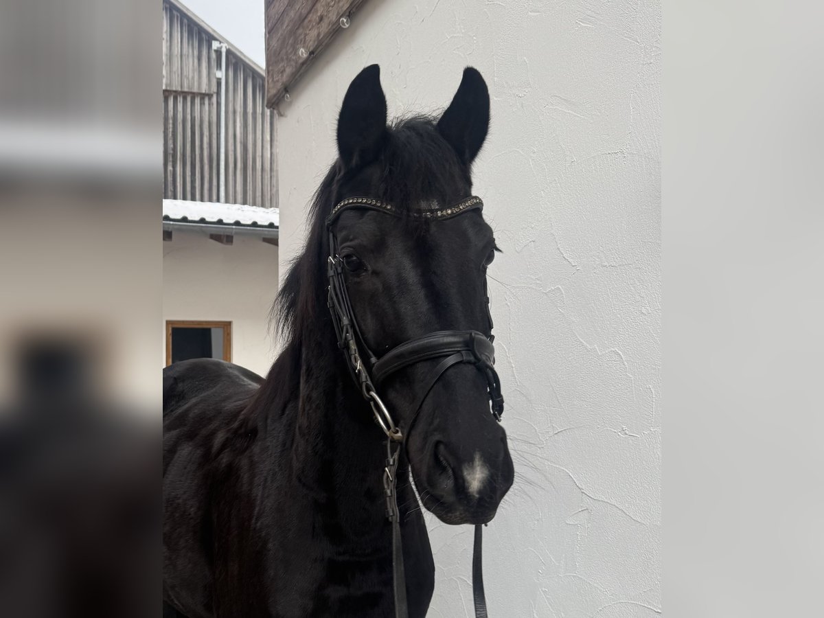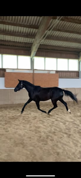 Zum Verkauf steht diese bildhübsche 3-jährige Rappstute namens Diva mit einem Stockmaß von etwa 167 cm. Sie besitzt einen herzensguten Charakter und möchte gefallen. Dies spiegelt sich vor allem auch in ihrem gutmütigen Umgang mit anderen Pferden und Menschen. Sie ist den Umgang mit Kindern gewohnt und zeigt allzeit ein tadelloses Verhalten. Die Gruppenhaltung auf der Weide stellt garkein Problem dar. Sie genießt es förmlich, mit ihren Artgenossen auf der Koppel zu spielen. Beim Anreiten zeigte sie sich brav und gelehrig. Sie verfügt über 3 sehr gute GGA mit einer starken hervorzuhebenden Hinterhandarbeit. Im Hinblick auf ihren aktuellen Ausbildungsstand und ihres jungen Alters ist sie jedoch kein Anfängerpferd. Sie benötigt ein gewisses Einfühlungsvermögen und eine unabhängige Reiterhand. Gut vorstellbar wäre ein Einsatz im Dressurviereck. Da sie voll im Wachstum steht, wurde sie nach dem Anreiten nochmal in die Koppelpause geschickt. Die Stute hatte kurze Zeit etwas sensibel mit ihrer Haut reagiert. Daraufhin wurde eine Blutuntersuchung durchgeführt und ein Zinkmangel festgestellt. Dieser Mangel kann über entsprechendes Zusatzfutter ausgeglichen und reguliert werden. Es liegt ein aktueller Röntgen-TÜV vor, der mit gut befundet wurde. Die Stute steht derzeit in 94227 Zwiesel und kann jederzeit gerne Probe geritten werden.