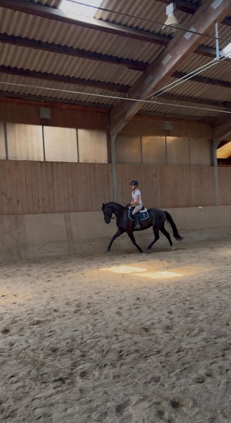 Se ofrece a la venta esta hermosa y elegante yegua parda de 3 años llamada Diva, con una altura de aproximadamente 1,66 m. Posee un carácter muy amable y desea agradar, lo cual se refleja especialmente en su trato tranquilo tanto con otros caballos como con las personas. Está acostumbrada a convivir con niños y siempre muestra un comportamiento ejemplar. La convivencia en grupo en el prado no representa ningún problema para ella; disfruta jugar con sus compañeros en la pastura. Durante su entrenamiento de montar, se mostró obediente y receptiva. Sin embargo, dado su nivel de entrenamiento actual y su juventud, no es una yegua para principiantes. Requiere sensibilidad y una mano independiente del jinete. Al estar en pleno crecimiento, después de su iniciación en la monta, fue enviada nuevamente a un período de descanso en la paddock. Durante el verano, la yegua reaccionó de manera algo sensible en la piel. Se le realizó un análisis de sangre, que reveló una deficiencia de zinc. Este déficit puede ser corregido y regulado mediante una alimentación complementaria adecuada. Se vende a un precio claramente por debajo de su valor debido a un informe veterinario. Actualmente, la yegua se encuentra en Zwiesel, en Baviera.