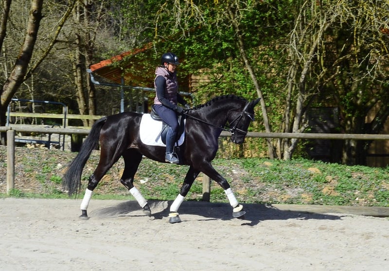 Schicke Rappstute mit sehr viel Talent und Vermögen am Sprung, mit toller Einstellung, überzeugt sie durch ihre Manier. Mit 3 guten Grundgangarten ausgestattet. Eine besondere Empfehlung für den Vielseitigkeitssport.