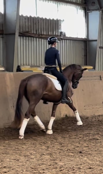 Ta córka Livaldona zachwyca swoim pięknym kolorem i wspaniałą twarzą - po prostu piękna do zakochania. Matką jest odnosząca sukcesy w sporcie jeździeckim klacz państwowa Quintessenz od Quaterbacka. Quintessenz jest również pełną siostrą Grand Prix odnoszącego sukcesy Quite Righta. Jeźdzalność Quibelle jest wspaniała, zawsze oferuje swoją pomoc z pełną motywacją i cieszy się codzienną pracą. Super wnętrze i nastawienie. To koń szkoleniowy, jakiego się pragnie! Przedstawiamy duży przegląd, przegląd jest nienaganny / w idealnym stanie (w tym szyja i grzbiet). Klacz pochodzi z własnej hodowli i była wychowywana w najlepszych warunkach oraz delikatnie ujeżdżana. Quibelle zna pastwisko - i jest absolutnie wspaniała w relacjach społecznych w stadzie. Transport i wyjazdy również całkowicie łatwe.