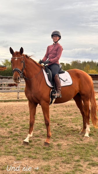 Secrets are forever bald 5 jährig - ca. 1.68m - Reitpferdeprüfung in Vorbereitung Traum-Stute vom erfolgreichen Hengst Secret. Es handelt sich um eine verschmuste, kopfklare Stute, die vom ersten Tag ihrer Ausbildung mit Freude dabei ist. Sie hat gute Grundgangarten - ein solides, rittiges Pferd mit Erfolgsgarantie. 🥇💥 Wer mit dem Gedanken spielt auch mal ein Fohlen zu ziehen, hat mit dieser Stute einen doppelten Gewinn erzielt. 🍀 Standort: Leipzig Preis: 12.000 € ⸻ Besichtigung & Probereiten: Probereiten: 30 € pro Pferd (max. 2 Reiter) Feiertags: 50 € Absagen bitte mind. 24 Std. vorher – sonst kostenpflichtig. Vorführen durch unsere Bereiter (z. B. Bodenarbeit): 25 € pro Pferd Für die Terminbestätigung bitte vollständigen Namen & Adresse angeben. Ankaufsuntersuchung über Ihren oder unseren Tierarzt möglich. Transport kann organisiert werden. Anfragen bitte nur telefonisch: 📞 0341 / 98995223 🕘 Mo. – So. von 09:00 – 18:00 Uhr Weitere Verkaufspferde unter: 🌐 www.deutsche-pferde-boerse.de Hinweis: Stockmaß-Angaben sind Schätzungen des Verkäufers und keine zugesicherten Eigenschaften. Der Verkauf erfolgt im Kundenauftrag.