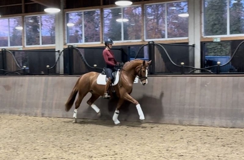 Elisa Rose ist eine vielversprechende 4-jährige Stute mit einem Stockmaß von 168 cm, gezogen von Erbe x Rosencharmeur. Sie überzeugt durch ihre sehr gute Rittigkeit, eine feine Anlehnung und ein angenehmes Reitgefühl, das sofort Vertrauen vermittelt. Elisa Rose befindet sich aktuell in professioneller Ausbildung und zeigt sich dabei stets lernbereit, ehrlich und leistungswillig. Durch ihre Leichtrittigkeit ist sie nicht nur für ambitionierte Reiter interessant, sondern eignet sich auch hervorragend als Umsteigerpferd. Auch beim Freispringen macht sie einen guten Job. Ein guter Röntgentüv liegt bereits vor. Eine wunderschöne Stute mit Perspektive für die weitere Ausbildung und den Sport. Videos können auf Anfrage gerne versendet werden.