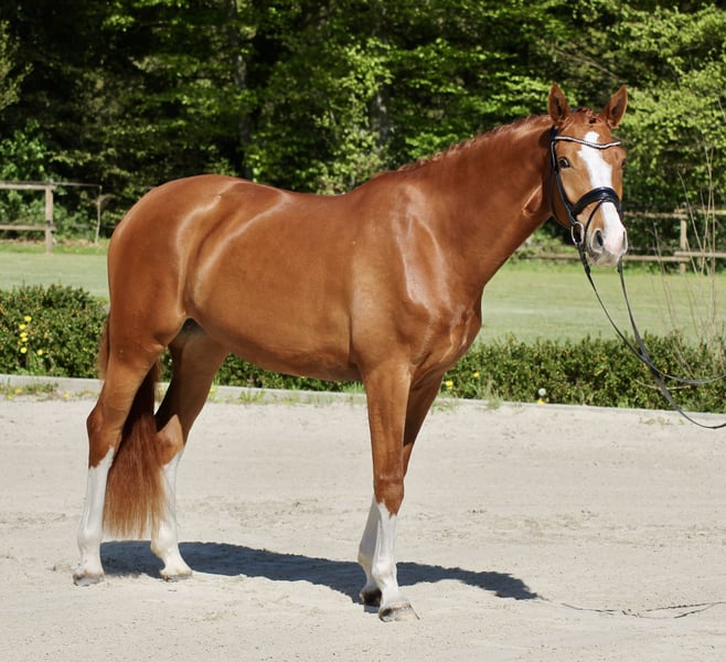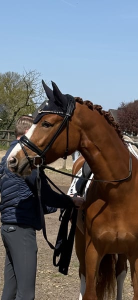 Ich verkaufe aus eigener Zucht eine wunderschöne vielversprechende 4-jährige Stute von Erbe x Rosencharmeur. Sie überzeugt durch Ihre sehr gute Rittigkeit, eine feine Anlehnung und ein angenehmes Reitgefühl, welches sofort Vertrauen vermittelt. Aktuell befindet sich die Stute in professioneller Ausbildung und zeigt sich dabei stets lernbereit, ehrlich und leistungswillig. Durch ihre Leichtrittigkeit ist sie nicht nur für Ambitionierte Reiter interessant, sondern eignet sich aus hervorragend als Umsteigerpferd/Familienpferd. Freispringen und kleine Sprünge unter dem Reiter sind ihr bekannt und bereiten ihr Freude. Ein sehr guter Röntgentüv liegt bereits vor. Eine wunderschöne Stute mit Perspektive für die weitere Ausbildung und den Sport. Bei ihr gilt das Motto: Aufsteigen, losreiten und Spaß haben! Videos werden auf Anfrage versendet. TEL. 015775070291
