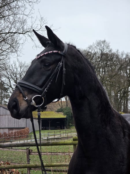 Zum Verkauf steht eine vierjährige Stute von Scolari aus einer San Remo Mutter. Die Stute überzeugt mit drei guten Grundgangarten sowie einem besonders lieben und ausgeglichenen Charakter. Sie ist brav im täglichen Umgang und zeigt sich sowohl im Stall als auch auf der Weide sehr verträglich mit anderen Pferden. Sie ist seit ca. 6 Wochen unter dem Sattel und zeigt sich dabei sehr lernwillig und unkompliziert. Sowohl in der Halle als auch auf dem Außenplatz, auch gemeinsam mit anderen Pferden, bleibt sie stets ruhig und gelassen. Fremden Menschen gegenüber ist sie anfangs im Kopf und Ohrenbereich noch etwas skeptisch. Mit etwas Geduld und dem nötigen Vertrauen legt sich dies jedoch schnell. Durch ihre freundliche Art und ihr angenehmes Wesen eignet sie sich ideal als Nachwuchspferd für ambitionierte Freizeitreiter oder den sportlichen Einstieg. Ein guter TÜV und Video sind auf Anfrage möglich.
