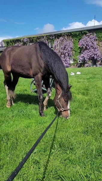 Warmbloed Hannoveraanse merrie. Vader: Zoom (DE 431316793414) Dressuurgericht, met drie hoog gestikte witte benen, een bles met het teken Z, een brede bles, volledige manen en staart. Van nature uitstekende basisgangen. Moedig, open, zelfverzekerd, levendig en nieuwsgierig van aard. Liefdevol. Groeit op in een gemengd kuddeverband, zeer sociaal en goed geïntegreerd. Gebruiksgebied: gewenst voor de sport, met zichtbaar uitzonderlijk potentieel voor de discipline. Gezondheid: gechipt, ontwormd en gevaccineerd. Heeft geen slechte gewoonten, kent de hoefsmid en is gewend aan het laden. Huidige opleidingsniveau: leeftijdsadequaat, speels en met veel liefde en geduld. Aangelijnd aan zadel, bit en dekens; is aangeleerd aan longeren, dit is onder begeleiding van een professionele instructrice gedaan en op leeftijdsadequate, speelse wijze opgebouwd. Indien gewenst kan een gezondheidscheck (AKU) besproken worden in een persoonlijk gesprek. De prijs stijgt naarmate de opleiding vordert. Deze prachtige, dressuurgerichte Hannoveraanse merrie overtuigt met haar uitstekende basisgangen en haar moedige, open karakter. In haar afstamming bevinden zich twee van de meest invloedrijke dressuurverervers van onze tijd, Zoom en Escolar. Beide lijnen staan voor krachtige, elastische bewegingen, uitstekende rijdbaarheid en sportieve bereidheid. Dit alles is al zichtbaar in haar indrukwekkende kwaliteit en uitstraling. Karakter en uitstraling: Zohara ES straalt een liefdevolle, duidelijke aard uit en heeft een natuurlijke uitstraling. Ze is attent, mensgericht en leergierig in haar omgang. In beweging overtuigt ze met een ruime stap, een schwungvol draf, actieve achterhand en veel elasticiteit in de rug. Ze groeit op in een natuurlijke omgeving in een gemengd kuddeverband, is gezond, correct gebouwd en toont zich goed ontwikkeld voor haar leeftijd. Toekomstperspectief: Met haar hooggekwalificeerde afstamming, haar heldere karakter en veelbelovende basisgangen biedt Zohara ES uitstekende voorwaarden voor de dressuur, voor de ambitieuze dressuurruiter en ook voor de hogere fokkerij. Een jonge merrie met charme, genetica en toekomstperspectief – ideaal voor ambitieuze ruiters, instructeurs of fokkers die waarde hechten aan kwaliteit en potentieel.