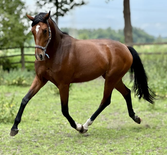 Dressurpferd mit viel Potenzial zu verkaufen. Zum Verkauf steht eine vierjährige, gerade angerittener Dressurnachwuchs mit hervorragenden Grundgangarten und bester Einstellung zur Arbeit. Diese Stute überzeugt mit elastischen, raumgreifenden Bewegungen, einem klaren Takt und viel Balance und Ausdruck. Ihr Charakter ist angenehm, aufmerksam und lernwillig – ein echtes Talent für die Zukunft! Ideal für ambitionierte Reiter*innen, die ein Pferd mit Perspektive für den Dressursport suchen.