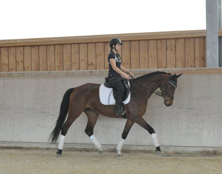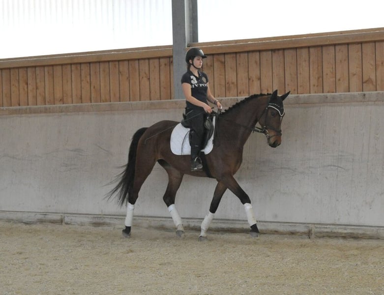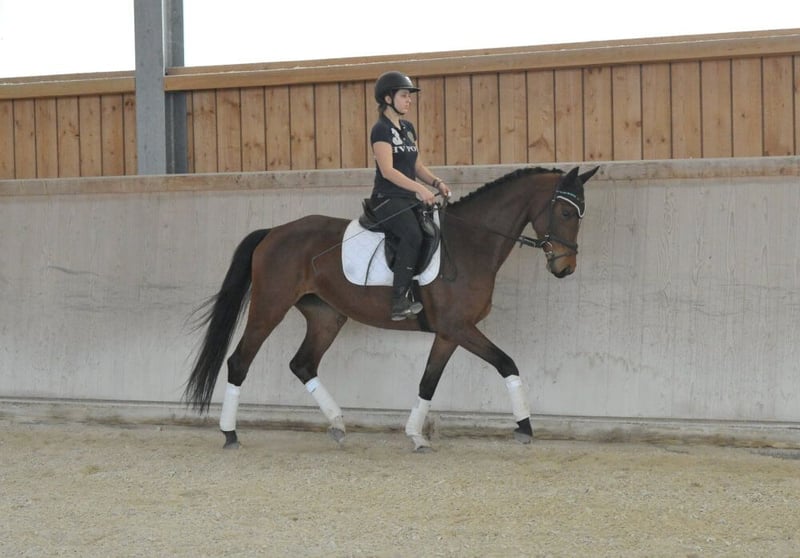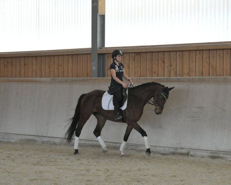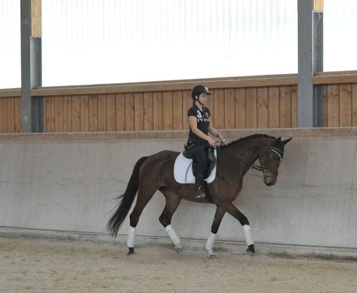 Elegante und sehr rittige Hannoveraner-Stute mit besten Nerven. Herrlich zu reiten, sehr bequem zu sitzen, einfach in der Anlehnung, mit leichten, eleganten Bewegungen. In der täglichen Arbeit und im Umgang mit guter Einstellung.