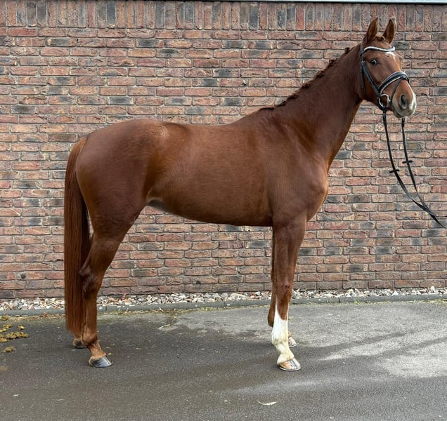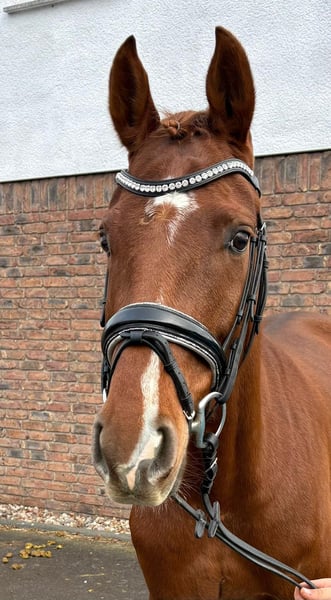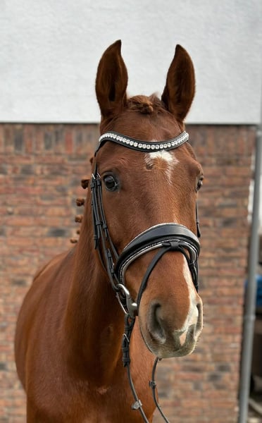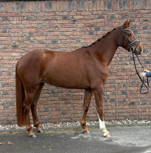 Gut gezogene handliche Stute mit tollem Trab und Galopp. Die Stute befindet sich aktuell in Ausbildung und wird vorbereitet auf ihren ersten Start in Dressurpferde A. Im Umgang ist sie ganz brav, beim Reiten muss man sich durchsetzen können, da sie manchmal ihren eigenen Kopf haben kann. Sie geht leicht am Zügel und ist gut zu sitzen. Ein guter aktueller Tüv liegt vor.