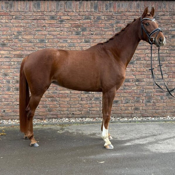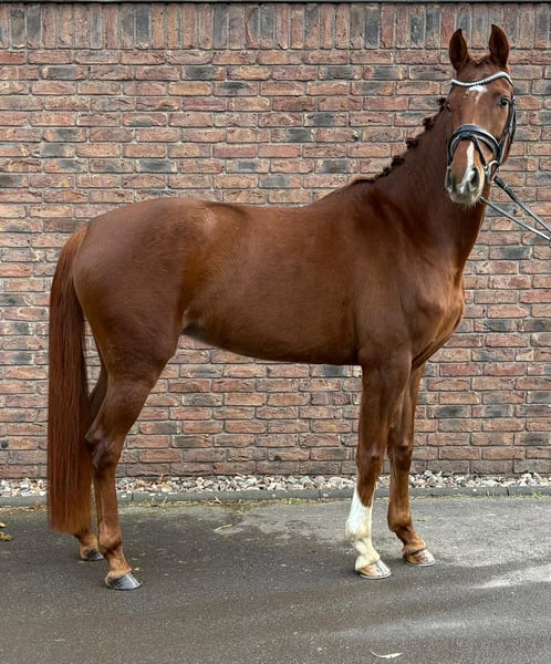 Se pone a la venta una yegua de 2021, de 5 años, por Sezuan’s Donnerhall x First Dance x Wolkenstein. Tiene excelentes cualidades de movimiento. Debido a la falta de jinete, hasta ahora no ha sido presentada en competición. Recientemente ha sido puesta en entrenamiento profesional. Se disponen de radiografías recientes.
