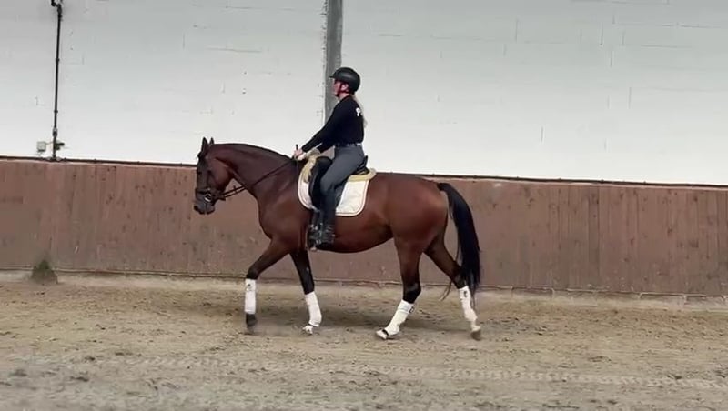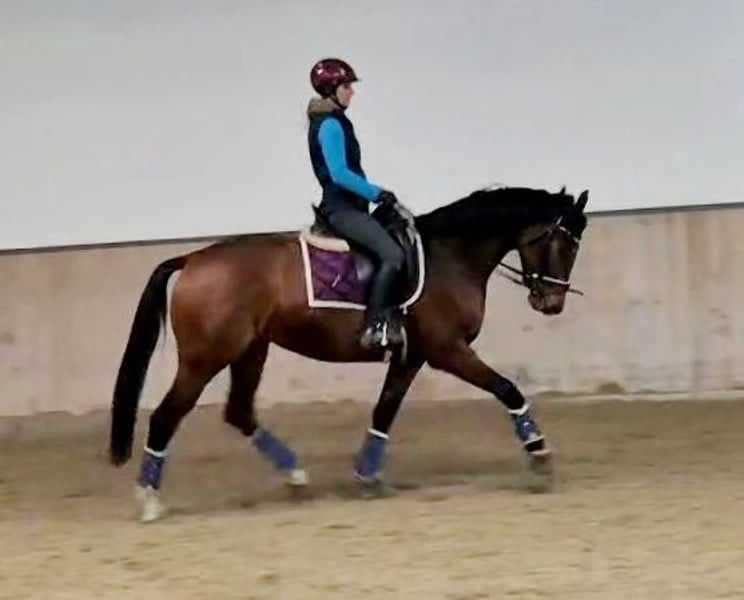 Im Auftrag des Züchters wird hier eine superliebe und sehr hübsche braune Stute mit top Abstammung (Fusionist x Lauries Crusador) angeboten. Sie ist mit derzeit 1,65 m ein ideales Damenpferd. Aufgrund von Bestandsverkleinerung sehr günstig abzugeben. Die Stute ist angeritten. Sie ist brav unter dem Sattel, dennoch aufgrund ihres Ausbildungsstandes kein Anfänger- oder Kinderpferd. Sie hat einen guten Röntgen Tüv. Hauptsächlich ist sie aufgrund ihrer Abstammung für die Dressur geeignet, sie stellt sich aber auch beim Freispringen sehr geschickt an. Für die Zucht wäre sie ebenfalls sehr gut geeignet, da sie eine sehr interessante Abstammung hat ( Vater Fusionist: Franklin- Ehrentanz- Florestan). Aus ihrer Mutter stammt auch eine Stute, die 2022 Preisspitze auf der Vedener Auktion wurde! Schnell sein lohnt sich...eine tolle Stute mit vielen Möglichkeiten zum kleineren Preis!!! VHB 12.900 Euro