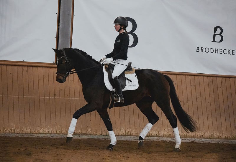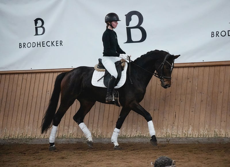 BURGHOF EASTER SALES vom 30.03. bis 06.04.2026 In der Kollektion: 35 Dressur-, Spring- und Freizeitpferde Alle Infos unter: https://brodhecker-burghof.de/burghof-easter-sales-2026/ Die fünfjährige De Sandro-Tochter “Die Hübsche” besticht ihrem eleganten Exterieur, drei hervorragenden Grundgangarten und einer tollen Rittigkeit. Mit einem sehr guten Charakter und einem ruhigen Gemüt ausgestattet, eignet sie sich perfekt für ambitionierte Amateurreiter. Vater DSP De Sandro wurde vier mal in Folge DSP-Champion und ist erfolgreich in der Schweren Klasse. Großmutter Charleen brachte mit Delaware bereits einen gekörten Sohn hervor, sowie zahlreiche in Dressur und Springen erfolgreiche Sportpferde. Bei Interesse an unseren Verkaufspferden, kontaktieren Sie uns gerne telefonisch oder per WhatsApp: Springpferde - Tel. (+49)159/06026914 (Johannes Brodhecker) Dressurpferde - Tel. (+49)172/8733686 (Volker Brodhecker)