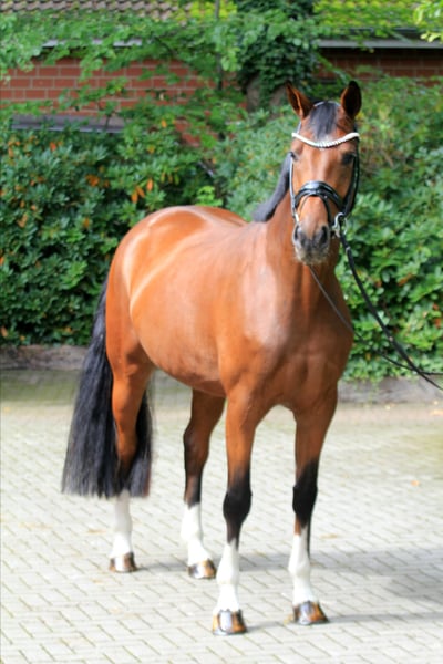 Bereits fünfjährig präsentiert sich diese junge Stute mit guter Versammlungsbereitschaft und steht bereit für den kommenden Turniersaison. Das ihre Grundqualität, sowohl in den Grundgangarten als auch in den Rittigkeitswerten, nicht von ungefähr stammt, zeigt ein Blick in das Pedigree. Vater Secret, jüngst als Future Sire ausgezeichnet überzeugt mit seinen Nachkommen in Zucht und Sport. Seine Vererbungsleistung ist einzigartig. Mütterlicherseits folgt die Vollschwester zur Mutter des Hengstes Blue Hors St. Schufro. St. Schufro ist ausgezeichnet als Elitehengst des Dänischen Warmblutverbandes, Sieger in der Grand Prix Kür beim CDI Falsterbo mit 81,080 % und außerdem Vater mehrerer gekörter Hengste, wie Skyline To Be, dem schwedischen Jungpferdechampion, und dem Leistungsprüfungssieger St. Athletique Video auf Anfrage!