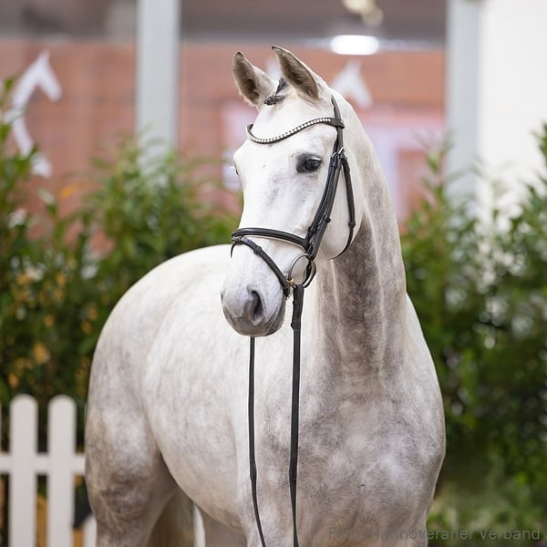 Valerie vereint äußere Präsenz mit inneren Stärken: bemerkenswerte Durchlässigkeit, optimalen Sitzkomfort und einen harmonischen Gesamteindruck, der im täglichen Training begeistert. Zusätzlich wurde Valerie mit der Gesundheitsprämie Vet+ ausgezeichnet. Aus ihrer direkten Mutterlinie stammen die beiden gekörten Hengste Avicii v. Apache sowie ein Millennium-Sohn, ebenso wie das erfolgreiche Sportpferd Duna Blanca v. Don Darius (DRE: Grand Prix mit Jil Lana Seidel). Prämie: Vet+ 2. Generation Sportpferde Dressur: Duna Blanca v. Don Darius (DRE: Grand Prix mit Jil Lana Seidel); Zachary 3 v. Zack (DRE: S* mit Kristine Möller-Engel); Campari 219 v. Cordoba (DRE: M** mit Antonia Sturm,VA 2007); StPrA Mohnblume S/Mohnblume v. Münchhausen (DRE: M* mit Frauke Wendt). Aufbauprüfungen Dressur: Fiesta Blanco v. Fürst Jazz (DRE: L,VA 2025); Mabel/Mabel 39 v. Münchhausen (DRE: L,VA 2006). gekörte Hengste: gek. Hengst v. Millennium (München-Riem 2019); gek. Hengst Avicii v. Apache (MS-Handorf 2014). 3. Generation Sportpferde Dressur: Feiner Fürst/Feiner Fürst 5 v. Fürsten-Look (DRE: S* mit Sabrina Nawrot); Hidalgo V v. Hofrat (DRE: S* mit Anna Fischer); Flórent MD/Florent 12 v. Fürst Romancier (DRE: M** mit Greta Sophie Osmers); Ferero R/Ferrero R v. For Romance II (DRE: M** mit Saskia Hagedorn); Caretto 7 v. Colambo (DRE: M** mit Peter Schusser); Fräulein Blocksberg v. Fürst Wilhelm (DRE: M* mit Marie Davier); Belle Amie/Belle Amie 66 v. Belissimo M (DRE: M* mit Malve Oldenburg); White Lady/White Lady 67 v. Wonderland (DRE: M* mit Franziska Kaufmann). Sportpferde Springen: Der Droste v. Diarado (SPR: int. 1,40 m mit Finja Bormann); Gremmy/Gremmy 4 v. Godewind (SPR: 1,40 m mit Dralle,Nele); Linda/Linda 307 v. Le Primeur (SPR: 1,35 m mit Ann-Sophie Schrader); Avantage 13 v. Acord II (SPR: 1,35 m mit Julia Bulling); Spencer 87 v. Acquit (Singapore) (SPR: 1,30 m mit Karin Göschl); Waikikis-Boy v. Waikiki (SPR: 1,30 m mit Michael Steinz). Aufbauprüfungen Springen: Liberty ASS v. New Quidam (SPR: 1,30 m mit Ann-Sophie Schrader); Balu 501 v. Bon Balou (SPR: 1,30 m mit Roman Duchac). Bes. Prämientöchter: StPr Way of Life/Wakkida v. Waikiki; StPr Waitakki/Waitaki 41 v. Waikiki (Herwart von der Decken-Schau Verden 2007); StPr Raika/Rosaria 10 v. Rosentau; StPr Grafity/Grafity 2 v. Godewind. 5. Generation Aufbauprüfungen Springen: LIBERO 51 v. Lehnsherr (SPR: L,VA 1986). Mutter: Ginger ZL: 3/3 Großmutter: Ferrera Prämierung: 2xIa. ZL: 19/16 ZSP: Feldprüfung Reitpferd - Trab 7,00 Galopp 7,00 Schritt 8,00 / Durchschnitt Rittigkeit 8,00 / Durchschnitt Springen 7,00 Das Pferd ist ein Verdener Auktionspferd und wird am 25.01.2026 online versteigert. Vom 12.01. bis zum 25.01. kann das Pferd jeden Tag beim öffentlichen Training besichtigt und ausprobiert werden. Das Startgebot bei der Versteigerung ist 8.000 Euro.