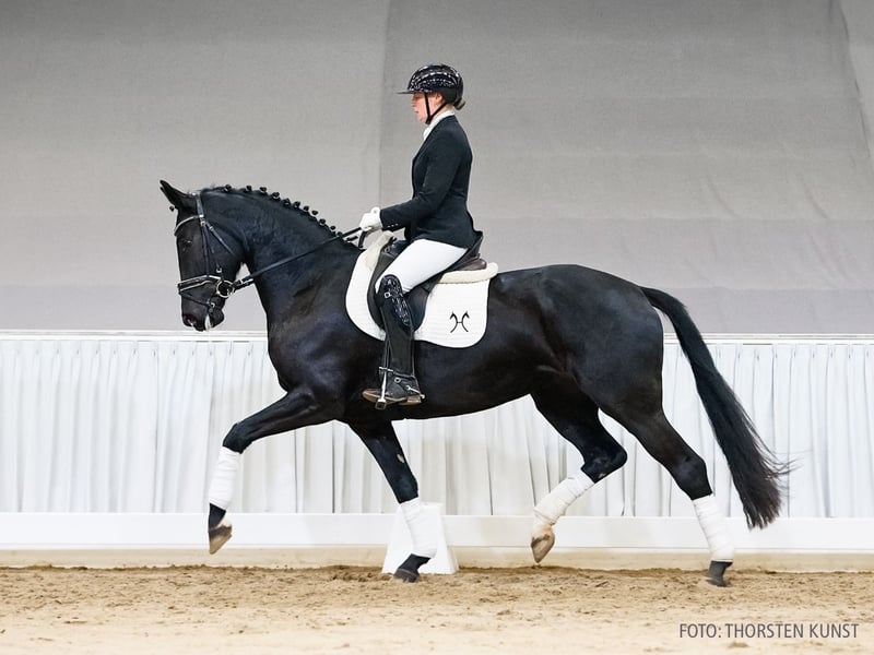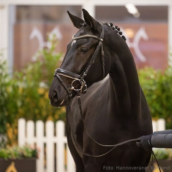 Dancinglight zeigt sich unter dem Reiter noch etwas zurückhaltend, entfaltet dabei jedoch bereits vielversprechendes Potenzial für den gehobenen Dressursport. Mit ihrem natürlichen Bewegungsfluss und der Bereitschaft zu lernen macht sie neugierig auf ihre zukünftige Entwicklung. Aus der Großmutter StPr Emely stammen unter anderem der erfolgreiche Sportler Stardust v. Sir Donnerhall II (DRE: international S** mit Maike Günthner). 2. Generation Sportpferde Dressur: Stardust 44 v. Sir Donnerhall II (DRE: int. S** mit Maike Günthner). Sportpferde Vielseitigkeit: Candy/Candy 851 v. Carridam (DRE: L,SPR: L,VS: int. M mit Ingrid Klimke,Gelände: L**). Auktionspferde: Fideral v. Finest (VA 2019); HannPr Vio v. Viscount (VA 2018); Catch Me v. Classe (FoVA 2012); Diadem v. Diamond Hit (FoVA 2010). Bes. Prämientöchter: HannPrA Dualipa v. Despacito; HannPrA So beauty v. Shu Fu; HannPrA Goldmarie v. Grey Top. 3. Generation Sportpferde Springen: HannPr Corminta/Corminta 4 v. Cormint (SPR: int. 1,30 m mit Oliver Ross,VA 2019); Cooby Doo v. Casalido (SPR: 1,30 m mit Silke Manssen); Ecalypso v. Escudo I (SPR: 1,30 m mit Sabrina Balz). Auktionspferde: Karo Dame H v. Keaton I (FoVA 2022); Cliff v. Cador (FoVA 2013). Bes. Prämientöchter: HannPr Cayenne v. Casallco (Herwart von der Decken-Schau Verden 2019); StPr Esculypsa v. Escudo I; StPr Emely v. Escudo I; StPr Dauphina v. Dauphin. 4. Generation Sportpferde Dressur: Romantik/Romantik 52 v. Rotspon (DRE: M* mit Maria Habermann); gek. Hengst Colani/Colani 9 v. Calypso II (DRE: M mit Koch,Peter,Verden 1990); Chantal/Chantal 62 v. Calypso II (DRE: M mit Finken,Holga,VA 1994). Sportpferde Springen: Northern Skyfall v. Stakkato (SPR: 1,45 m mit Sterling MALNIK); Amber Valletta v. Asti's Amsterdam (SPR: int. 1,40 m mit Kaya Ehning); Carly/Carly 10 v. Contefino (SPR: 1,45 m mit Ann-Kathrin Brune); Stacal v. Stakkato (SPR: int. 1,35 m mit SH. Hasan Bin Rashid Al Khalifa); gek. Hengst Stakko/von Stakkato v. Stakkato (SPR: 1,40 m mit Justine Tebbel,Spezialspringpferdeprfg. Kl.M m.2 Uml.Bundeschampionat 5 jährige 2011,Verden 2008,HM 2008,Prä.Spr. Körung Verden 2008); Sprotte 3 v. Stenograph (SPR: 1,45 m mit Sienna Charles); StPr Candy Girl v. Calido I (SPR: 1,45 m mit Giulio DI RENZO VON FREYMANN,FoVA 2004); HH Gypsy 2 v. Stakkato (SPR: 1,45 m mit Michael Hughes); v. Stakkato (SPR: 1,45 m mit Cyril BENET); Styling v. Stakkato (SPR: 1,45 m mit Emil Orban); Carter 11 v. Carridam (SPR: 1,40 m mit Werner Dittmer); Darquito v. D'Inzeo (Thorgal de Kezeg) (SPR: 1,40 m mit Christoph Hassenbürger); Solo con Giotto 4 v. Stolzenberg (SPR: 1,30 m mit Jessica Sudmann); Call me Schätzchen/Verstappa v. Candy de Nantuel (SPR: 1,30 m mit Elisabeth Jungk); Die Leichtigkeit des Seins 3 v. Diacontinus (SPR: 1,30 m mit Krzysztof Jawid); Hummel 84 v. Stakkato (SPR: 1,30 m mit Katharina Rapp); Lorix v. Lordanos (SPR: 1,30 m mit Selina Köhl,FoVA 2010,VA 2012); Corlida 2 v. Corlensky G (SPR: 1,30 m mit Thomas Brandt); Calido's champ/Candyman v. Calido I (SPR: 1,30 m mit Laura Henning,FoVA 2005); Romina 206 v. Rabino (SPR: 1,30 m mit Thomas Tölke); Calimero 162 v. Calypso II (SPR: M mit Dondorff,Michael). Sportpferde Fahren: Whoopi/Whoopi 6 v. Werther (Fahren: S). Sportpferde Voltigieren: Elektor/Elidano v. El Bundy (SPR: L,Voltigieren: S** mit Caroline Reckordt,Deutsche Meisterschaft Einzelvoltigieren Junioren der Damen 2015). Aufbauprüfungen Springen: Diamantinus 4 v. Diamant de Plaisir I (SPR: 1,30 m mit Riad Landoulsi,VA 2022); Cita 58 v. Chacoon Blue (SPR: L); gek. Hengst Chembassy v. Chacoon Blue (SPR: L,Adelheidsdorf 2022); Diaclinton S v. Diamant De Semilly (SPR: L); Kedira 2 v. Karajan (SPR: L); Sambuca 114 v. Stolzenberg (SPR: L); Vin Cento v. Vucello (SPR: L); Deep blue Sea v. Diacontinus (SPR: L); CB one v. Cornet Obolensky (Windows v.h.Costersv.) (SPR: L,FoVA 2016: 18.000 €); Qualita 7 v. Qualito I (SPR: L); Debbie Doloris v. Diacontinus (SPR: L); Quintano 66 v. Qualito I (SPR: L); Strubbl v. Stakkato (SPR: L); Galina 252 v. Graf Galen (SPR: L); Staccus v. Stakkato (SPR: L); Silvester 156 v. Stakkato (SPR: L); Encoder/El-Bundy v. El Bundy (SPR: L); Cassandra/Cassandra 229 v. Calido I (SPR: L); StPr Wanda/Wanda 291 v. Wonderland (SPR: L,Louis Wiegels-Schau Uelzen 2003). Auktionspferde: Chefsache v. Casino Berlin (FoVA 2023); Grand Slam v. Glasgow van't Merelsnest (FoVA 2022); Dallas Dream v. Dallas VDL (FoVA 2021); Sina de Chirone/Sina v. Stakkato (FoVA 2007); Summertime v. Stakkato (FoVA 2006); Skyflower v. Stolzenberg (FoVA 2004); Cheyenne v. Calypso II (VA 2000). Bes. Prämientöchter: HannPrA Daliah Lavi v. Diacontinus; HannPr Käte v. Karajan; HannPr Ditana v. Diacontinus; HannPrA Escalina v. Escudo I; StPr Shakira v. Stakkato; StPr Arabella v. Acord II; StPr Mareen v. Matcho. Mutter: Firma ZL: 6/3 Großmutter: Emely Prämierung: 1xIa. ZL: 17/12 ZSP: Feldprüfung Reitpferd - Trab 6,50 Galopp 7,50 Schritt 7,00 / Durchschnitt Rittigkeit 7,50 / Durchschnitt Springen 8,25 Das Pferd ist ein Verdener Auktionspferd und wird am 25.01.2026 online versteigert. Vom 12.01. bis zum 25.01. kann das Pferd jeden Tag beim öffentlichen Training besichtigt und ausprobiert werden. Das Startgebot bei der Versteigerung ist 8.000 Euro.