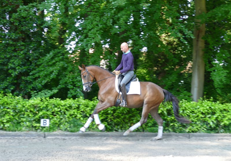 Selbst züchterisch verantwortlich, bekenne ich ich mich mit Stolz zu dieser Stute von Bon Courage - Florenciano - Don Primero, namens Bonny. Bereits gut angeritten und absolut amateurtauglich, ausgestattet mit guten Grundgangarten mit hervorzuhebenden Schritt und immer aktivem, unter den Schwerpunkt fußendem Hinterbein, dürfte sie jetzt in ein schönes neues Zuhause umziehen. Für mehr Informationen und Videos bitte per Whatsapp, 01713738697