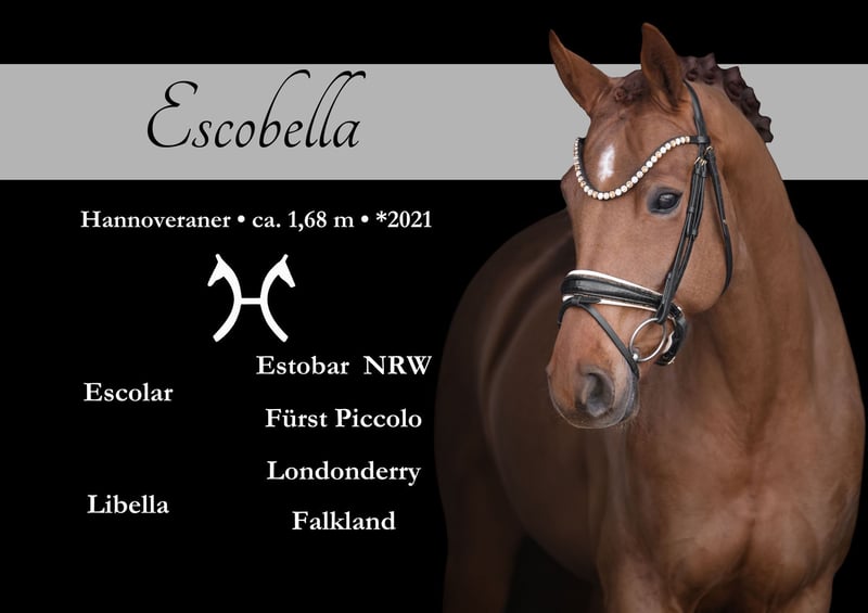 Liebe Interessenten, Für Terminvereinbarungen Probereiten senden Sie mir bitte eine WhatsApp. Für weitere Fragen bin ich tagsüber per WhatsApp erreichbar, telefonisch erreichen Sie mich am Besten zwischen 16 und 19 Uhr. Ich freue mich auf eine Kontaktaufnahme www.angelina-devittorio.de ⭐️Escobella⭐️ Alter: 5 Jahre (2021) Größe: aktuell ca 1,68 m Abstammung: Escolar x Londonderry Ausbildungsstand: Dressurpferde A AKU: gute Röntgenbilder vorhanden Escobella ist eine wunderschöne, fünfjährige Stute im modernen Hengsttyp, abstammend von Escolar. Sie überzeugt mit drei hervorragenden Grundgangarten sowie einem ausgesprochen liebenswerten und braven Charakter. Ihr Schritt ist taktsicher und von großem Raumgriff mit viel Übertritt geprägt. Der Trab besticht durch eine sehr gute Grundmechanik mit besonders aktiver Hinterhand und viel Ausdruck, während sie mit einer tollen Galoppade überzeugt. Im täglichen Umgang zeigt sich Escobella absolut unkompliziert, menschenbezogen und stets freundlich. Unter dem Sattel ist sie brav, rittig und angenehm zu sitzen, mit konstanter, weicher Anlehnung. Sie ist sowohl für die tägliche Arbeit als auch für Ausritte und das Reiten auf Außenplätzen bestens geeignet und präsentiert sich dabei jederzeit nervenstark und ausgeglichen. Damit ist sie ein ideales Amateurpferd und eignet sich besonders für Reiter ab solidem A-Niveau, die einen zuverlässigen und qualitätsvollen Partner suchen. Im Rahmen der für den Verkauf durchgeführten Ankaufsuntersuchung wurde als Zufallsbefund ein geringgradiges Herznebengeräusch festgestellt. Dieses hat sie bislang in keiner Weise eingeschränkt, und sie zeigt sich jederzeit leistungsbereit und gesund. Daher wird sie weit unter ihrem eigentlichen Wert verkauft! Eine absolute Gelegenheit, ein hochveranlagtes Pferd zu einem absolut günstigen Preis zu erwerben. Aktuelle gute Röntgenbilder liegen ebenso vor. ⚜️Tel: 0171-3438949 ⚜️a.devittorio@web.de ⚜️https://www.ehorses.de/angelinadevittorio Facebook und Instagram Angelina De Vittorio