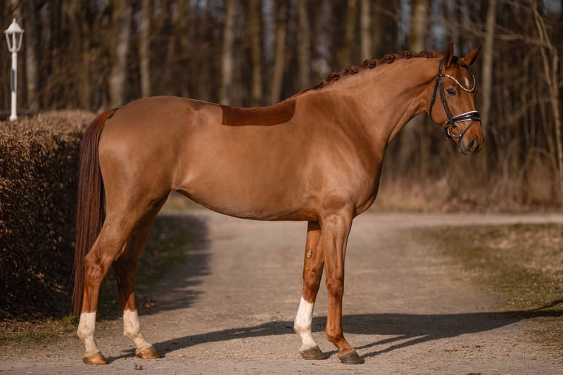 Dear Interested Parties, To schedule a trial ride, please send me a WhatsApp message. For further questions, I am available via WhatsApp during the day, and you can reach me best by phone between 4 PM and 7 PM. I look forward to hearing from you. www.angelina-devittorio.de ⭐️Escobella⭐️ Age: 5 years (2021) Height: approximately 16.1 hh Pedigree: Escolar x Londonderry Training level: Dressage horse class A Health: Good X-ray images available Escobella is a stunning five-year-old mare with a modern stallion type, sired by Escolar. She impresses with three excellent basic gaits and an exceptionally sweet and well-behaved character. Her walk is rhythmical and characterized by a large stride with plenty of overreach. The trot features a very good basic mechanics, especially active hindquarters and expressive movement, while her canter is equally impressive. In daily handling, Escobella is completely straightforward, human-oriented, and always friendly. Under saddle, she is well-behaved, rideable, and comfortable to sit, with a consistent, soft contact. She is suitable for daily training, trail rides, and riding on outdoor arenas, always showing nerves of steel and calmness. She is an ideal amateur horse and particularly suitable for riders at solid A-level who are looking for a reliable and high-quality partner. During the pre-purchase examination conducted for the sale, a minor incidental heart murmur was detected. It has not limited her in any way so far, and she consistently shows performance readiness and good health. Therefore, she is being sold well below her true value! An excellent opportunity to acquire a highly talented horse at a very favorable price. Current good X-ray images are also available. ⚜️ Phone: 0171-3438949 ⚜️ Email: a.devittorio@web.de ⚜️ https://www.ehorses.de/angelinadevittorio Facebook and Instagram: Angelina De Vittorio