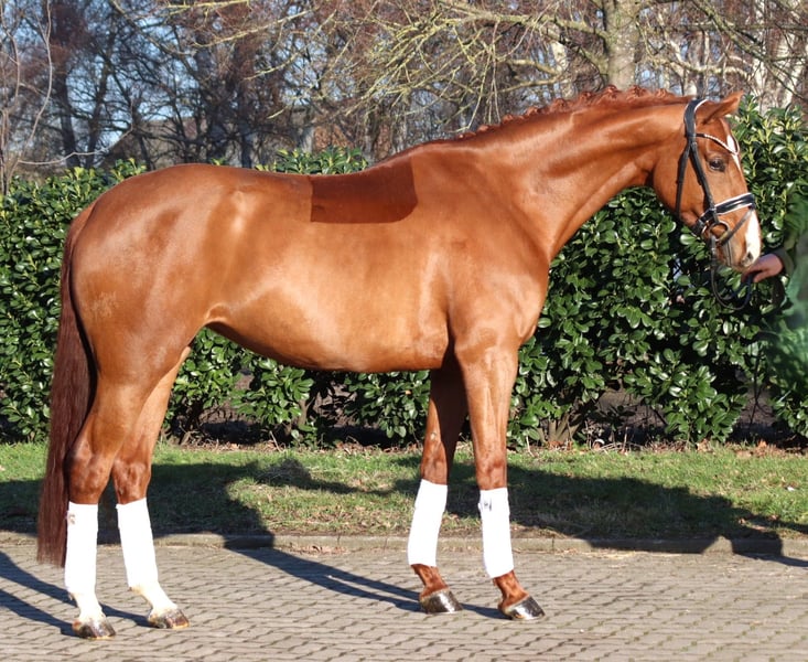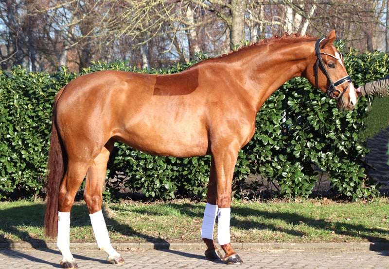 Bewegungsstarke 5 jährige Stute von Don Romance x Vivaldi, mit allen Möglichkeiten für das große Viereck. Die Stute überzeugt mit 3 herrausragenden Grundgangarten und vermittelt ihrem Reiter ein hervorragendes Reitgefühl. Preis zzgl. Mwst. Anfragen nur telefonisch, E-mails werden nicht beantwortet.
