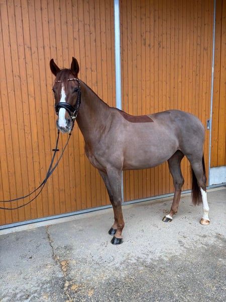 *Valencia* For sale is a beautiful Hanoverian mare, born in 2021. With her attractive color and a height of 16.1 hh, she impresses with her elegant appearance and promising pedigree. Valencia completed her mare performance test with an overall score of 8.11 and this year gave us a colt foal by Bowmore. This talented dressage partner already shows a lot of movement and willingness to learn. She is suitable for both ambitious leisure riders and competitive dressage. The mare is healthy, regularly vaccinated, and free of any illnesses. She is well-handled and easily manageable when visiting the vet, farrier, and dentist. A recent veterinary certificate (TÜV) is not available. If you are interested or would like more information, please feel free to contact me. Preferably via WhatsApp at +49 1556 0581906.