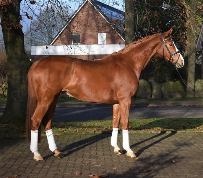 Wunderschöne Stute mit GGA in Ausnahmequalität. Celebrity ist leichtrittig, hat viel Ausstrahlung - so wie man sich von einem qualititätsvollen Dressurpferd wünscht. Sie hat einen lieben und aufmerksamen Charakter, ist verträglich in der Herde, dem Menschen gegenüber offen, super freundlich und verschmust, dabei sehr gut erzogen. Probereiten jederzeit nach Absprache möglich. Mehr Infos finden Sie auf unserer Homepage. Hof Heisterbusch Team.