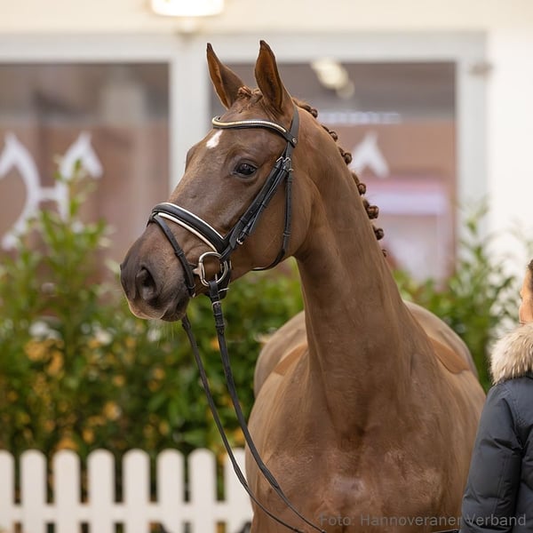 Mit interessant abgestimmtem Pedigree stellt sich Varella als ein sich fein bewegendes Dressurpferd dar. Sie ist mit der Hannoveraner Prämienanwartschaft ausgezeichnet, 1a prämiert anlässlich der Stutenschau in Tarmstedt, die sie als Klassensiegerin verließ. Ihre Großmutter StPr Liebelei ist Mutter des gekörten Hengstes Ferguson v. Floriscount, deren Vollbruder mit Nele Lübbehusen siegreich in S-Dressuren ist. Zuchtprämie: 1xIa. Leistungsprüfung: Feldprüfung Reitpferd - Trab 8,00 Galopp 7,50 Schritt 8,50 / Durchschnitt Rittigkeit 8,50 / Durchschnitt Springen 0,00 Prämie: HannPrA 2. Generation Sportpferde Dressur: Ferguson 9 v. Floriscount (DRE: S mit Nele Lübbehusen); La Bonita/La Bonita 80 v. Livaldon (DRE: M** mit Alvaro Osborne Diez). gekörte Hengste: gek. Hengst Ferguson/v. Floriscount v. Floriscount (Verden 2013,FoVA 2011: 24.000 €,HM 2013: 80.000 €,Prä.Dre. Körung Verden 2013). Auktionspferde: Vitória v. Vitalis (FoVA 2022); Samsonite v. Secret (FoVA 2020: 39.000 €). Bes. Prämientöchter: HannPrA Bohemian Rhapsody/Bohemian Rhapsody 11 v. Bon Vivaldi NRW (Herwart von der Decken-Schau Verden 2024); HannPrA Diva/Dollar Girl 70 v. Donier; HannPrA Fantastic Dream/Fantastic Dream 18 v. Feinrich; HannPr Flipflop/Flip Flop 15 v. Floriscount (Herwart von der Decken-Schau Verden 2015); StPrA Davina v. Davignon I. 3. Generation Sportpferde Dressur: StPr Rock'n Rose EMH/EMH Rock'n Rose FBW v. Rock my Soul (DRE: S* mit Anna-Lisa Schepper,Finalteilnehmer Bundeschampionat 4j.Reitpferde 2020,Bundeschampionat f. Reitpferde 2020); HannPrA Quinada/Quinada 2 v. Quasar de Charry (DRE: S* mit Jörn Kubelke); Roberto Cavalli 5 v. Riverside (DRE: S* mit Hannes Baumgart,VA 2009); gek. Hengst Big Shelby/Shelby 15 v. Sir Donnerhall I (DRE: M** mit Kathrin Peikert,Kreuth 2013,FoVA 2011); Finest Look v. Fürsten-Look (DRE: M* mit Dominic Bücker,FoVA 2016); Loriot 377 v. Londontime (DRE: M* mit Julia Hiller,FoVA 2008: 25.000 €); Belly Deluxe F.A.H.B. v. Barclay (DRE: M* mit Constanze Möller). Aufbauprüfungen Dressur: gek. Hengst Bienvenue/Bienvenue 10 v. Bon Coeur (DRE: M mit Jan-Dirk Gießelmann,Adelheidsdorf 2021); HannPr Diamanda Dea/Diamanda Dea S v. Dancier (DRE: L,Herwart von der Decken-Schau Verden 2018); Sienna/Sienna 58 v. Sir Donnerhall I (DRE: L,FoVA 2012). Auktionspferde: Springtime de Montligeon/Shape of you v. Secret Escape (FoVA 2025); Sigi v. Secret Escape (FoVA 2024); Braveheart v. Bonds (FoVA 2023); Vet+ Infinity/Infinity 62 v. In My Mind (VA 2025: 110.000 €,FoVA 2021); v. Dynamic Dream - v. Dynamic Dream (VA 2023); Vet+ Somersby K/Sommersby 32 v. Secret (VA 2024); Sunday Rose v. Sir Donnerhall I (VA 2022); v. Dancier v. Dancier (VA 2018); Fine Star/Fendi v. Finest (FoVA 2015); Brandon v. Bretton Woods (VA 2016); Lifetime v. Londontime (FoVA 2010: 16.000 €). Bes. Prämientöchter: HannPrA Valerie v. Von Und Zu; HannPrA Siebenschön/Siebenschön 4 v. Sir Donnerhall I; HannPr Bonita M v. Benicio; HannPr Diana v. Desiderio; HannPr Delarenta v. Dimaggio; StPr Luciana v. Lauries Crusador (Reservesiegerin Herwart von der Decken-Schau Verden 2012); StPr Dancia v. Dancier; StPr Rosalie/Rosalie 131 v. Rotspon; StPr Hexe v. His Highness; StPr Liebelei v. Lauries Crusador. 4. Generation Sportpferde Dressur: Wondrous Fox v. Wolkentanz (DRE: Grand Prix mit Birgid Schenk,Dressurprüfung Kl. S*** - Grand Prix de Dressage 2009). Sportpferde Springen: StPr LS-S Aggi/Aggi B.B v. Arpeggio (SPR: 1,40 m mit Sabine Trippe); Connery 21 v. Contendro I (SPR: 1,35 m mit Kassandra Mohr). Aufbauprüfungen Dressur: gek. Hengst Emiliano/Emiliano 13 v. Escamillo (DRE: L,Greven 2023); VbPr Bluebell Star v. Borsalino (DRE: L). gekörte Hengste: gek. Hengst Entertainer Number One v. Escamillo (Hoftermin 2022). Auktionspferde: Weekend Feeling v. Worldly (VA 2006). Bes. Prämientöchter: StPr Lumana v. Likoto; StPr Gala/Gala 101 v. Golfclub. 5. Generation Sportpferde Dressur: Enya electric v. Espri (DRE: M** mit Julia Kistner). Sportpferde Springen: gek. Hengst Coeur d'Amour/Coeur d' Amour v. Conteur (SPR: int. 1,30 m mit Denise Spörri,Verden 2006,VA 2009,HM 2006); Dwayne the Rock Johnson/Dwayne the Rock Johnson 3 v. Diacontinus (SPR: 1,40 m mit Birka Antonia Moritz); Rascudo v. Rascalino (SPR: 1,35 m mit Mariam Kienz); Cassina K v. Cassini II (SPR: 1,35 m mit Anja-Sabrina Heinsohn,VA 2016); For Fantasy 12 v. Fairbanks (SPR: 1,30 m mit Pia Pelters); Sir Hook v. Sambuco Junior (SPR: 1,30 m mit Lutz Besecke); Liostro's Son v. Liostro (SPR: M mit Marcel Neukirch). Aufbauprüfungen Dressur: Fireball 50 v. Floris Prince (DRE: L). Aufbauprüfungen Springen: Cerano 8 v. Carolus I (SPR: M mit Carstens,Bernd); Camisso v. Carolus I (SPR: L); Dior 71 v. Dakar (SPR: L). Auktionspferde: De Luxe v. Dakar (VA 1988). Bes. Prämientöchter: StPr Carluccia v. Carlucci; StPr Emma Peel K. v. Escudo II; StPr Danja v. Dakar. Mutter: Doswidanja Prämierung: 1xIa. ZL: 6/5 ZSP: Feldprüfung Reitpferd - Trab 7,50 Galopp 7,50 Schritt 8,00 / Durchschnitt Rittigkeit 8,00 / Durchschnitt Springen 6,50 Großmutter: Liebelei Prämierung: 2xIa. ZL: 16/11 ZSP: Feldprüfung Reitpferd - Trab 8,50 Galopp 8,50 Schritt 8,00 / Durchschnitt Rittigkeit 9,25 / Durchschnitt Springen 6,25 Das Pferd ist ein Verdener Auktionspferd und wird am 25.01.2026 online versteigert. Vom 12.01. bis zum 25.01. kann das Pferd jeden Tag beim öffentlichen Training besichtigt und ausprobiert werden. Das Startgebot bei der Versteigerung ist 8.000 Euro.