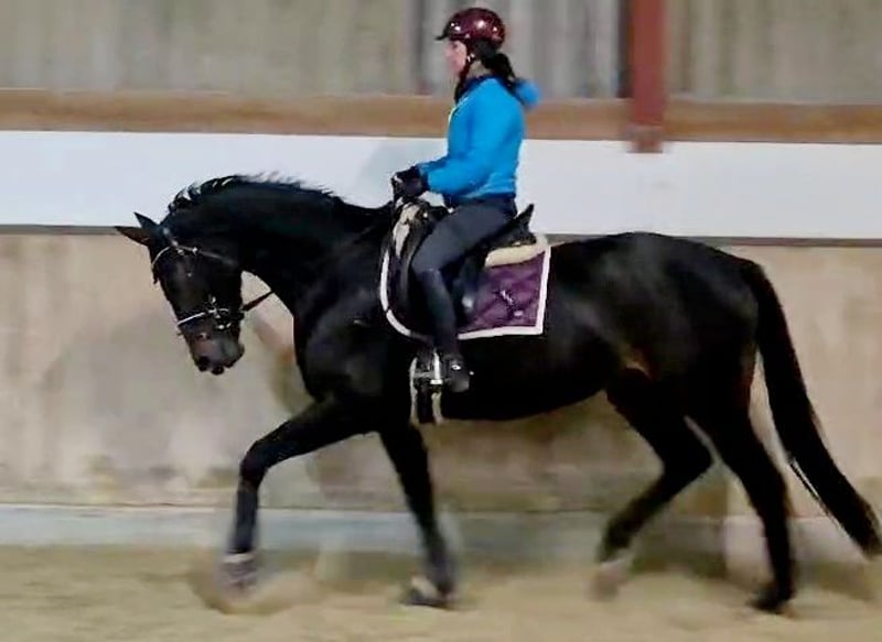 Don't wait, call or write right away! UNIQUE OPPORTUNITY!!!! On behalf of the breeder, a beautiful, light-footed mare with an excellent pedigree (Bellany x Swarovsky) and outstanding potential for dressage is offered! A highly noble and elegant dressage princess in a desirable dark coat. The mare is also very interesting for breeding. She carries top bloodlines in her pedigree (Bon Coeur, De Niro, Sandro Hit, Lauries Crusador, Raphael). The mare is 4 years old and has been started under saddle. Although she has only been under saddle for 2 months, she is well-behaved and shows no vices while being ridden! Overall, the mare is brave and fearless. She has 3 great gaits, especially the trot, which is light-footed, powerful over the back, and very elegant. She shows a very good willingness to collect! The canter is well-balanced, and the walk is ground-covering and absolutely rhythmically secure. The mare comes from a very renowned breeding establishment; she is well-socialized, raised in the best conditions, people-oriented, and easy to handle. Many great offspring come from her dam line (the breeder has also produced top prices at Hanoverian auctions!). The mare has been recently clinically examined and is in very good condition. Good X-rays are also available. She has a chip (no risk finding!!!! Fetlock joint, left hind; Birkeland chip) - otherwise, the X-rays are without abnormalities. Due to her elegant appearance and compact size (current height at withers approximately 1.68m), she is an ideal horse for ladies, juniors, or transition riders. However, due to her age and training level (started under saddle), a certain level of riding ability (license level) is required. The mare can be viewed and tried out by appointment via phone. I am available for any questions at any time. Further videos and photos can be sent upon request (also very gladly via WhatsApp) - just contact me at 0650/3537883. The TÜV can be viewed under the "Documents" section in the advertisement or I can gladly send it.