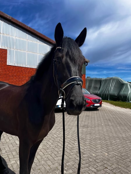 Dark Delight ist eine vierjährige Tochter von Despacito. Seit Mitte/Ende Dezember ist sie nun richtig unter dem Sattel und zeigt sich sehr lernwillig, motiviert und brav in der Arbeit. Delight hat einen Charakter aus Gold, sie ist unerschrocken, gut erzogen, vorsichtig mit dem Menschen und freut sich immer über Aufmerksamkeit. Dazu duldet sie ohne Probleme jeglichen Unfug vom Reiter, ob es Jacke an-/ ausziehen, aus einer knisternden Flasche trinken oder anderes ist, sie bleibt stets unbeeindruckt. Delight ist korrekt und mit Ruhe ausgebildet und lernt nun die Lektionen der Dressurpferde A. Reiterlich ist sie korrekt an den Hilfen und gibt einem immer ein sicheres Gefühl. Ein Video von ihr kann auf Anfrage gerne versendet werden. Bei Fragen oder Interesse einfach Telefonisch unter 04163 7706 oder auch über WhatsApp unter 01525 6448041 melden.
