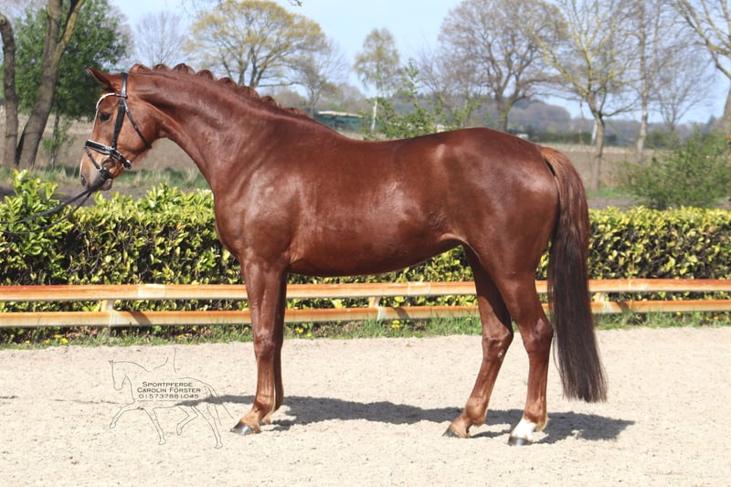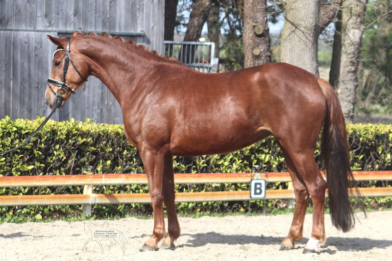 Beautiful 5-year-old mare by Damaschino out of a Scolari dam This mare impresses with three very good basic gaits and a typy appearance. Due to personal reasons of the breeder, she was started in training later than usual, allowing her ample time to mature. She is currently being ridden under saddle. Price plus VAT. Video to follow. For inquiries, please contact us by phone only at 015737881045. Written inquiries cannot be answered.