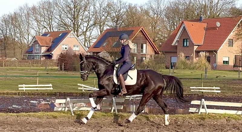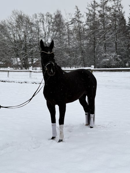 Stunning Black Beauty from an excellent bloodline! Beautiful black mare of very good quality for sale! Her three above-average gaits and friendly character distinguish this young lady, who has already produced a wonderful foal by Secret. Completely easy to handle and resilient! Also suitable for talented young riders. Already vaccinated. The mare is crouped, hence offered below market value. For questions, please call or WhatsApp, no emails. 01602428444