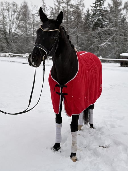 Bildschöne schwarze Schönheit aus bestem Stamm! Herrliche Rappstute von sehr guter Qualität abzugeben! Drei überdurchschnittliche Grundgangarten und ihr freundlicher Charakter zeichnen diese junge Dame, die bereits ein tolles Fohlen von Secret hatte, aus. Absolut unkompliziert im Umgang und nervenstark! Auch für talentierte Jugendliche geeignet. Bereits getüvt. Die Stute koppt, daher unter Wert abzugeben. Bei Fragen bitte anrufen oder whats App , bitte keine emails 01602428444
