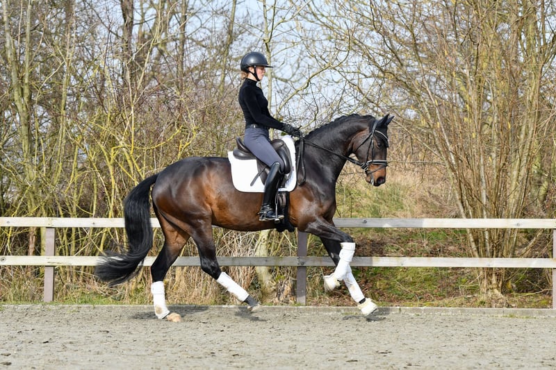 Mit SO SWEET steht eine hochmoderne, talentierte und bildschöne Hannoveraner Stute in eleganter Aufmachung zum Verkauf, die mit ihren vier Jahren bisher alles richtig gemacht hat! Ihren allerersten Turnierstart (im Mai 2025) münzte sie auf Anhieb in einen Sieg in einer Dressurpferdeprüfung der Klasse A mit einer Wertnote von 8,2 um. Trotz Windböen und Regen zeigte sie sich vollkommen unbeeindruckt, nervenstark und arbeitswillig, was sich auch im täglichen Training bei uns widerspiegelt! Neben ihrer Rittigkeit und ausreichend Fleiß, verfügt sie über ein aktives Hinterbein und drei gute Grundgangarten, wobei der Schritt ganz besonders hervorzuheben ist! Noch in der Entwicklung stehend, bringt SO SWEET wirklich alles mit, was es für den Dressursport braucht! Für weitere Rückfragen oder einen Termin zum Anschauen und Probereiten melden Sie sich jederzeit gern - am liebsten direkt per WhatsApp oder telefonisch bei Luisa Erichsen unter +49 174 2491719.