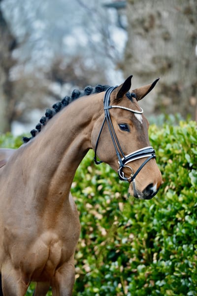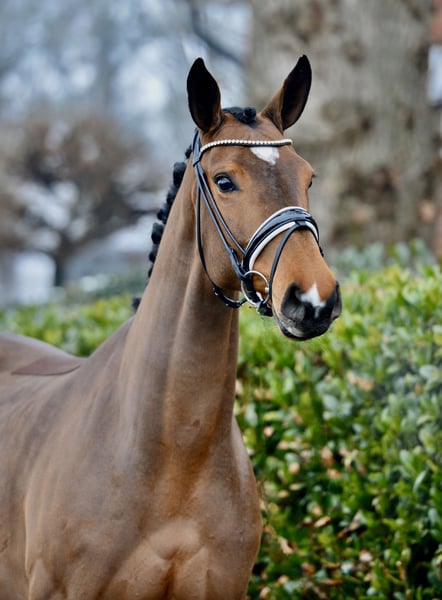 A classic example of a Vitalis daughter: impressive in appearance, with a fantastic temperament and excellent attitude. She is very people-oriented and friendly in character, and has already been presented in young horse inspections. Anyone who knows and loves Vitalis will surely appreciate this mare! Directly from the breeder, she has had time to mature and comes from a successful bloodline: Her dam produced a stallion by Franklin sold for €150,000, as well as two other high-priced young horses. A digital X-ray examination is available. Due to a mild vertebral alignment issue, she is being offered below value. Location: 49377 Vechta