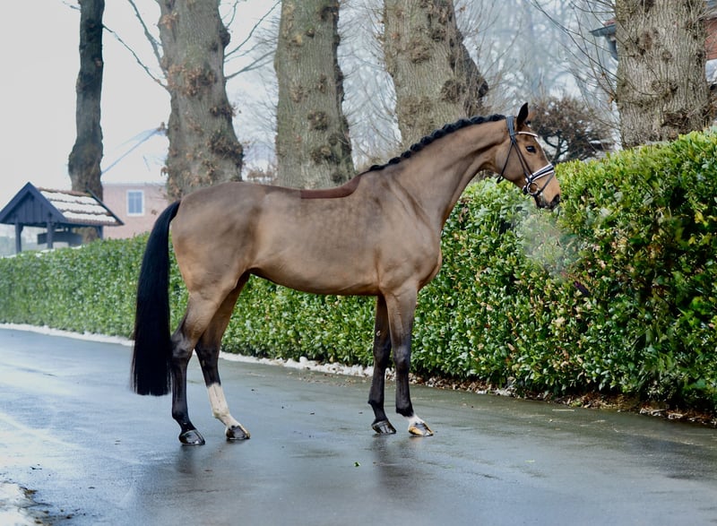 Una figlia di Vitalis come si deve: di grande presenza, con un temperamento fantastico e un'ottima attitudine. Dal carattere molto socievole e amichevole, è già stata presentata in prove per giovani cavalli. Chi conosce e ama Vitalis apprezzerà questa femmina! Direttamente dall’allevatore, ha avuto tempo per crescere ed è proveniente da una linea di sangue di successo: La madre ha prodotto un stallone venduto per 150.000 euro, da Franklin, e altri due giovani di alto valore. È disponibile un certificato digitale di radiografie. A causa di una lieve displasia vertebrale, viene venduta sotto il prezzo di mercato. Ubicazione: 49377 Vechta