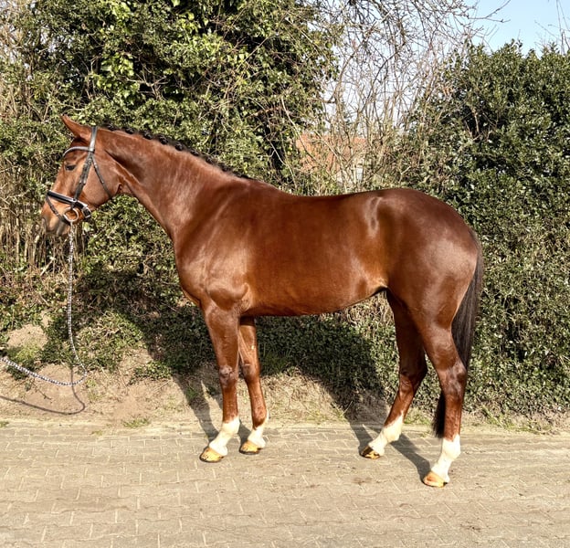 Wir verkaufen diese 5 jährige Stute im Auftrag des Züchters. Die Tochter des Birmingham verfügt über drei sehr gute GGA. Sie ist sehr rittig und kopfklar. Sie ist gut angeritten und ist nun bereit für ihre ersten Turnierstarts. Auch im Umgang ist sie absolut unkompliziert und sehr menschenbezogen. Für nähere Informationen stehen wir gerne in einem persönlichen Gespräch zur Verfügung. Kontaktaufnahme bitte per WhatsApp oder SMS, da bei uns das Netz nicht immer so gut ist.