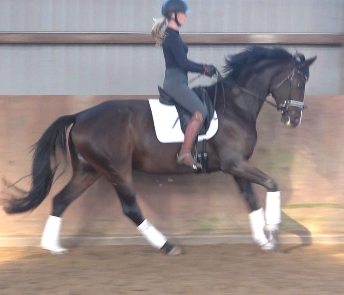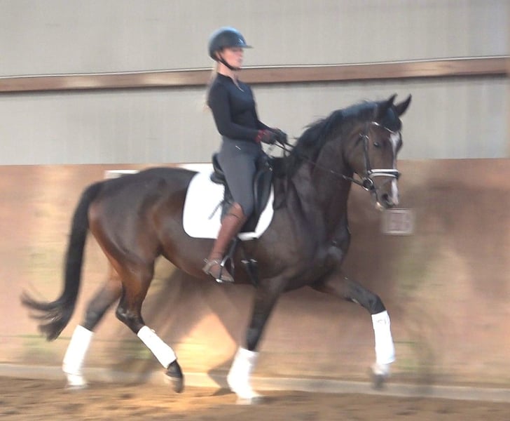 Quilena besticht nicht nur durch ihr hübsches Aussehen, sondern auch durch ihre kraftvollen und doch eleganten Bewegungen. Sie wurde schonend angeritten und bewegt sich auf sicherem A-Niveau,, auch die meisten L-Lektionen beherrscht sie schon und je anspruchsvoller die Lektionen werden, um so konzentrierter und leistungsbereiter scheint sie zu werden.. Sie will gefallen, wirkt manchmal noch etwas unsicher, Hänger fahren findet sie noch etwas aufregend, aber auch da üben wir und macht sie Fortschritte. Ein sehr guter Rö TÜV, inclusive Hals und Rücken liegt vor. Wir wünschen uns für sie einen Reiter, der Sicherheit und Vertrauen gibt. Quilenas Vollbruder Quintessential ist in Hannover gekört, wurde Hengstleistungssieger im 2-Tagestest mit der "Traumnote 8,94" (Galopp 9,7) wurde 3.-jährig Vizelandesmeister und fürs Bundeschampionat der 3-jährigen Hengste nominiert. Auch ihr Vater Q-Sieben hat 3-jährig seinen 14-Tage-Test als Dressursieger mit der Note 8,71 und einer 9,5 für die Rittigkeit und wurde Vize-Champion beim Oldenburger Landesturnier in Rastede. Auch mütterlicherseits verfügt Quilena über ein sehr gutes Pedigree aus einem alten Hannoveraner Stutenstamm von 1883. mit zahlreichen hochpreisigen Elite Auktion -Fohlen und - Pferden. des Hannoveraner Verbandes und Siegerfohlen. Die 3. Mutter Debatte gebar den gekörten Hengst Edinburgh und den bis St.Georg erfolgreichen Weltgraf II. Auch der erfolgreiche Laudabilis mit zahlreichen gekörten Söhnen aus der Schwester zu Debatte stammt aus dem alten Stutenstamm von 1883. Quilena, eine Stute mit ehrlichem Charakter, herausragenden Bewegungen in allen 3 Grundgangarten, die hoch hinaus will, und der eine große erfolgreiche Dressurkarriere bevortehen kann.