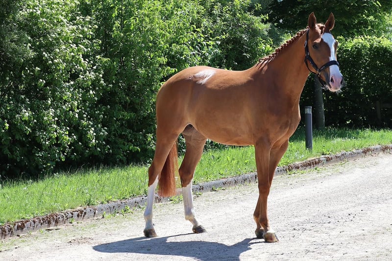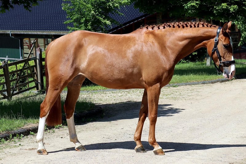 Seute Deern to elegancka klacz o wzroście około 1,58 m, nie za duża, z dobrą ruchliwością. Kupiliśmy ją jako źrebaka, w zeszłym roku miała bardzo ładnego źrebaka, a pod koniec ubiegłego roku została osiodłana. Uczyła się niesamowicie szybko i już w tym roku mogła brać udział w zawodach skokowych. Na zawodach od początku zachowywała się jak rasowa zawodniczka, a na parkurze skacze wszędzie, niezależnie od przeszkód, takich jak murki, woda itp. Ponieważ mamy za dużo koni, a nasz syn nie jest w stanie regularnie na niej jeździć, chcemy ją teraz sprzedać tylko w najlepsze i wspierające ręce. W obcowaniu jest bardzo miła, można z nią bez problemu jeździć w terenie, nie boi się traktorów itp. Może być również jeżdżona przez dzieci, ale z uwagi na swoje pięć lat nie nadaje się dla zupełnych początkujących.