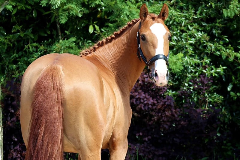 Seute Deern is a stylish mare, standing at approximately 1.58 m, not too big, with good movement. We bought her as a foal, and last year she had a very beautiful foal, and at the end of last year, she was backed. She learned incredibly quickly and was already able to compete in show jumping competitions this year. At the competition, she was quite routine from the start, and in the course, she jumps over everything, whether it's small walls, water, etc. Since we have too many horses and our son is unable to ride her consistently, we would now like to sell her only to the very best and supportive hands. She is sweet to handle, and you can ride her out in the field without any problems; she is not afraid of tractors, etc. She can also be ridden by children without any issues, but due to her being only five years old, not by complete beginners.