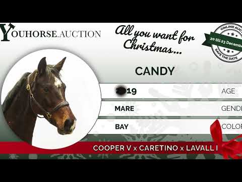 Candy ist eine Blutlinien-Stute, die schnell vom Boden abhebt und mit Leichtigkeit sowie Elastizität bewegt. Sie wirkt vorsichtig, zeigt scharfe Reflexe und demonstriert eine moderne Springtechnik. Ihr Pedigree aus Cooper x Caretino unterstreicht ihre schnellen Reaktionen, Athletik und natürliche Schärfe. Sie ist eine Stute, die eine Reiterin oder einen Reiter anspricht, die/der einen schnellen, aufmerksamen Sportpartner schätzt. Ihr Vater Cooper war bis 1,60 m im Springen erfolgreich und ist bekannt dafür, athletische Pferde mit Reflexen, Einstellung und Springqualität zu züchten. Ihre Mutter hat bereits Pferde im Springen bis 1,35 m, 1,45 m sowie einen lizenzierten Hengst hervorgebracht: Diamant de Casall. Die Großmutter ist keine Geringere als die Mutter von Casall, dem legendären 1,60 m Grand Prix-Hengst und einer der einflussreichsten Zuchtsamen im modernen Springsport. Candy stammt von einem der größten und renommiertesten Zuchtbetriebe für Sportpferde in Deutschland. Sie ist ungeritten und kennt nur eine Halfterführung. Bisher lebte sie ausschließlich auf der Weide, was ihr die Möglichkeit gab, sich richtig zu entwickeln und Kraft in Körper und Beinen aufzubauen. Eine ehrliche und reine junge Stute, die nun bereit ist, mit dem Training zu beginnen. Mit ihrer Blutlinie, ihren Reflexen, ihrem modernen Springstil und ihrer außergewöhnlichen Mutterlinie bietet Candy erhebliches Potenzial – sowohl für den Sport als auch für die zukünftige Zucht.