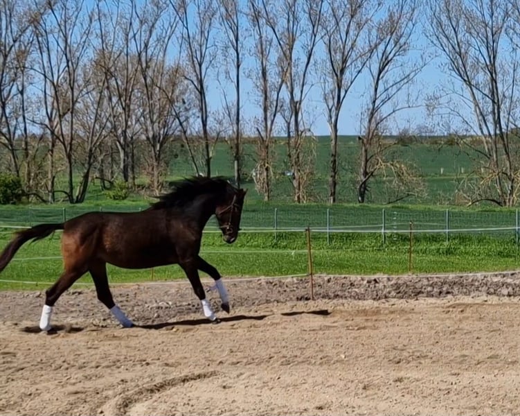 3-year-old Hanoverian mare out of a Hohenstein x world fame mare and sire Vivaldos. Raw. Currently about 1.60 tall and is growing. Docile, playful and determined. The pedigree includes Krack C, Desperados, Caprimond and Weltmyer. Information about the mother strain: In the dam line, the performance-tested and strong Trakehner blood. Combined with world fame and world meyer.