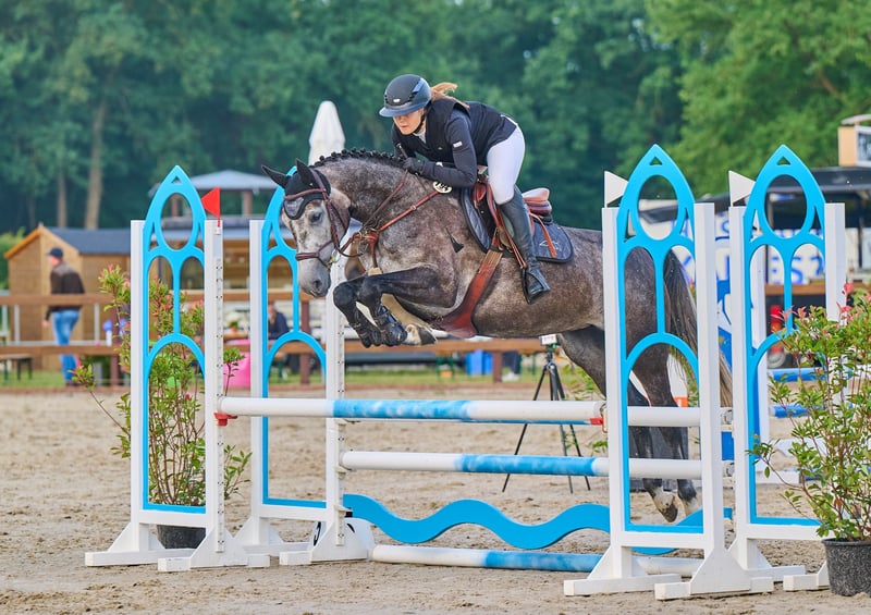 Zum Verkauf steht unsere 6 jährige Stute „Cataleya“ Sie stammt ab von Chacoon Blue x Escudo I und misst 163cm, deckt dabei aber sehr gut ab. Cataleya ist nicht nur bildhübsch sondern rundum ein Traumpferd. Sie war letztes Jahr mit Amateur nahezu jede Runde fehlerfrei und platziert bis Springpferde A**. Im Parcours zeigt sie sich stets unerschrocken, vorsichtig und mit viel Übersicht. Auch von Jugendlichen zu bedienen. Natürlich ist sie Schmiede- und Verladefromm. Ausreiten kennt sie allein sowie in der Gruppe. Im Umgang ist sie super anhänglich und freundlich. Ein Tüv aus 2024 ist vorhanden und kann verschickt werden. Für weitere Videos oder bei Fragen gerne melden. Verkauf nur wegen eigener Nachzucht in allerbeste Hände.