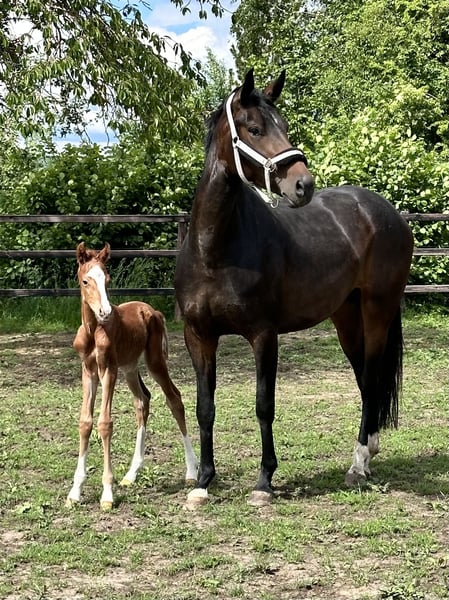This beautiful six-year-old mare is looking for a new environment. At four years old, she foaled a colt and was subsequently gently trained as a riding horse. She has three very good basic gaits and always moves with absolute rhythm and suppleness, no matter the situation. She is energetic and provides a confident seat for the rider. She is familiar with work in the indoor arena, on the training ground, and also goes out into the field, both in a group and alone. In handling, she is a true sweetheart. Due to her age and training level, she is not suitable for beginners. Thanks to her excellent pedigree, she is also very interesting for breeding. She has a very good breeding evaluation, awarded with VETPlus. She is being sold on behalf of the owner and is located in Westercelle.