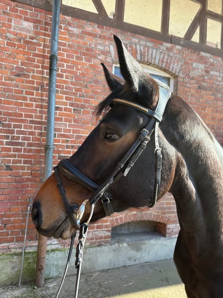Diese sechsjährige hübsche Stute sucht einen neuen Wirkungskreis. Vierjährig hatte sie ein Hengstfohlen beifuß und wurde danach schonend zum Reitpferd ausgebildet. Sie hat drei sehr gute Grundgangarten und läuft in jeder Situation immer absolut taktrein. Sie ist schwungvoll und gibt dem Reiter ein gutes Sitzgefühl. Sie kennt die Arbeit in der Halle, auf dem Platz und geht auch ins Gelände. Dies in der Gruppe, als auch allein. Im Umgang ist sie ein wahrer Schatz. Aufgrund des Alters und des Ausbildungsstandes ist sie jedoch nicht für Anfänger geeignet. Durch ihre gute Abstammung ist sie auch für die Zucht sehr interessant. Sie hat einen sehr guten Züchtertüv, mit VETPlus prämiert. Sie wird im Auftrag verkauft und steht in Westercelle.