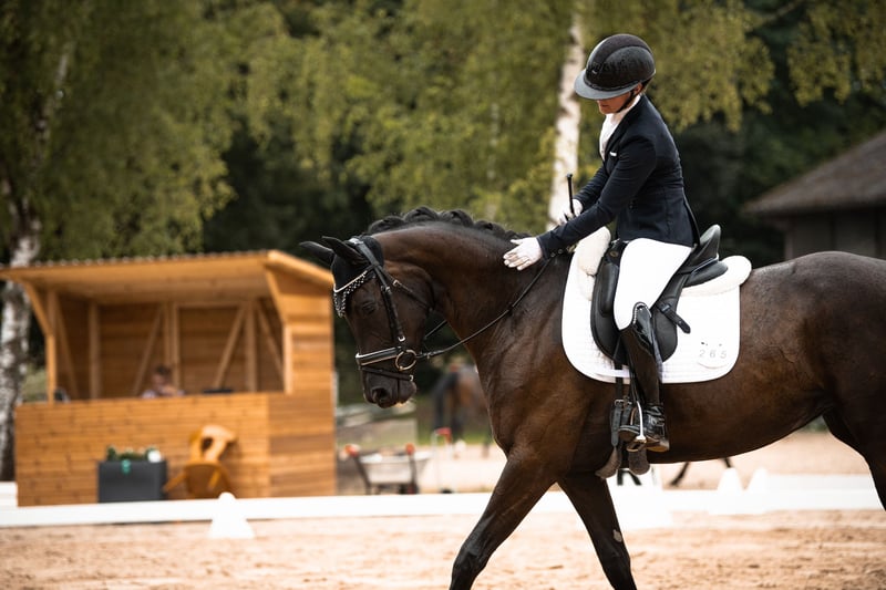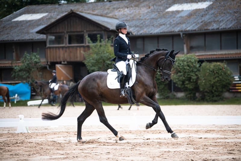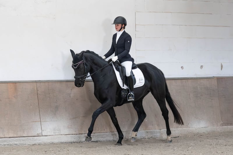 Zum Verkauf steht unsere beeindruckende Hannoveraner Stute aus dem Geburtsjahr 2020. Mit ihrem glänzenden schwarzen Fell ist diese Rappstute ein wahrer Hingucker und sticht aus jeder Herde hervor. Die Stute ist die ideale Partnerin auch für junge Reiterinnen und Reiter, die sich mit einem vertrauensvollen Pferd in die hohen Klassen entwickeln möchten. Die junge Dame zeigt sich stets lernwillig, aufmerksam und von ihrer besten Seite. Ihr ausgeglichenes Temperament und ihre schnelle Auffassungsgabe machen sie zu einem idealen Partner für ambitionierte Dressurreiter. Die 1a Hannoveraner Prämienanwärterschaft mit einer 8,5 in der Fremdreiterbewertung beweist die hohe Rittigkeit dieser besonderen Stute. Siegreich und platziert in Reitpferdeprüfungen und Platzierungen in Dressurpferde A unterstreichen die Qualität des Pferdes und die Ausbildung. Aktuell wird sie für die Klasse L und M gefördert, wobei sie Traversalen beherrscht und auch schon sicher die ersten Wechsel gesprungen ist. Auch beim spielerischen PiPa Training zeigt Disney ihr Talent und die Veranlagung für die höheren Klassen. Sie geht leicht, alleine und gerne in den Hänger, fährt wie ein Profi mit und bleibt auch ruhig auf dem geparkten Hänger stehen, auch dann, wenn das zweite Pferd abgeladen wird. Eine Fahrt zum Turnier ohne Begleitung stellt keine Herausforderung dar. In Prüfungen zeigt sie sich immer vom Umfeld oder von den mit reitenden Pferden unbeeindruckt. Wenn mal ein anderer buckelt oder Planen im Wind flattern, Disney bleibt konzentriert beim Reiter. Die Stute stammt aus einer Hannoveraner Prämienstute unserer eigenen Zucht und hat das Potential, ihrem neuen Besitzer viel Freude zu bereiten. Sie ist gesund, geimpft und entwurmt. Wenn Sie auf der Suche nach einem talentierten, jungen Dressurpferd sind, könnte diese Hannoveraner Stute genau das Richtige für Sie sein. Sie ist bereit, mit Ihnen gemeinsam die Welt des Dressursports zu erobern. Die Turnier Videos sind von Juni 2025 und die Trainingsvideos sind von Dezember 2025. Kontaktieren Sie uns gerne für weitere Informationen oder um einen Besichtigungstermin zu vereinbaren. Wir von Gärtner Reitsport und Pferdezucht sind auf die Ausbildung junger Equiden spezialisiert. Die Halbschwester Sarah U des Verkaufspferdes wurde ebenfalls von uns ausgebildet und ist in Reitpferde und Dressurpferde Prüfungen dauerplatziert und siegreich gewesen. Unser Liverpool aus dem selben Stutenstamm war 6-jährig unter den Top 16 der Dressur Jungpferde und 7-jährig S-platziert. Wir haben weitere hoch interessante Youngster, roh, angeritten, geritten und platziert, in der Verkaufsvorbereitung, sprechen Sie uns an. Wir freuen uns auf Ihre Nachricht!