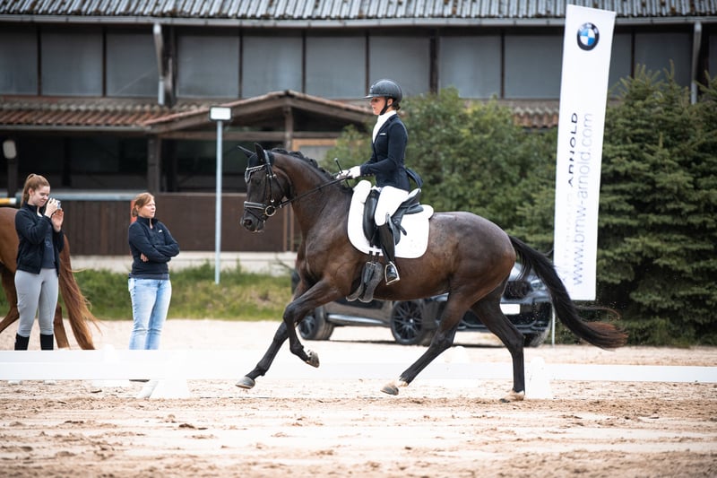 Na sprzedaż oferujemy naszą imponującą klacz holsztyńską urodzoną w 2020 roku. Jej błyszcząca czarna sierść sprawia, że jest prawdziwym przyciągającym wzrok koniem, wyróżniającym się w każdej stadzie. Klacz ta jest idealnym partnerem także dla młodych jeźdźców, którzy chcą rozwijać się w wyższych klasach, mając do dyspozycji zaufanego konia. Młoda dama zawsze chętnie się uczy, jest uważna i prezentuje się z najlepszej strony. Jej zrównoważony temperament i szybka percepcja czynią ją doskonałym partnerem dla ambitnych jeźdźców ujeżdżeniowych. Klacz z wysoką oceną 8,5 w ocenie od obcokrajowego jeźdźca, co potwierdza jej wysoką ujeżdżeniową zdolność, jest kandydatem do nagrody Hannoveraner Prämienanwärterschaft. Zwycięstwa i wysokie miejsca w konkursach na koniach sportowych oraz lokaty w klasie A ujeżdżeniowej podkreślają jakość konia i poziom jego wyszkolenia. Obecnie jest przygotowywana do klas L i M. Również podczas zabawowego treningu PiPa Disney pokazuje swój talent i predyspozycje do wyższych klas. Łatwo się jej jeździ, chętnie i samodzielnie wchodzi do przyczepy, jedzie jak profesjonalistka i pozostaje spokojna na stojąco na przyczepie, nawet gdy drugie konie są rozładowywane. Podróż na zawody bez towarzystwa nie stanowi dla niej wyzwania. W trakcie startów zawsze jest niewzruszona przez otoczenie czy konie w ruchu. Gdy inny koń się wierci lub płótna powiewają na wietrze, Disney zachowuje koncentrację i skupienie na jeźdźcu. Klacz pochodzi z naszej własnej hodowli, z hodowlanej matki z prestiżowego stada Hannoveraner i ma potencjał, by przynosić jej nowemu właścicielowi wiele radości. Jest zdrowa, zaszczepiona i odrobaczona. Jeśli poszukujesz utalentowanego, młodego konia ujeżdżeniowego, ta klacz holsztyńska może być właśnie tym, czego szukasz. Jest gotowa, by wspólnie z Tobą zdobywać świat sportu ujeżdżeniowego. Filmy z zawodów pochodzą z czerwca 2025 roku, a treningowe z grudnia 2025 roku. Zapraszamy do kontaktu w celu uzyskania dodatkowych informacji lub umówienia się na oględziny. My, Gärtner Reitsport und Pferdezucht, specjalizujemy się w szkoleniu młodych koni. Siostra sprzedażowej klaczy, Sarah U, również została przez nas wyhodowana i od wielu lat odnosi sukcesy w konkursach na koniach sportowych i ujeżdżeniowych. Nasz Liverpool, po tym samym matczynym stadzie, w wieku 6 lat był w TOP 16 młodych koni ujeżdżeniowych, a w wieku 7 lat osiągnął lokaty w klasie S. Posiadamy również inne bardzo interesujące młode konie, w stanie surowym, w trakcie treningu, jeżdżone i z sukcesami przygotowane do sprzedaży. Zapraszamy do kontaktu. Z niecierpliwością czekamy na Twoją wiadomość!