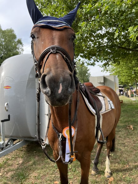 Na sprzedaż oferowana jest 6-letnia klacz Hannoveraner, potomka Chacfly x Stalypso, o wzroście około 166 cm. Klacz jest delikatnie wytrenowana i już zdobyła zwycięstwa w konkursach skoków na poziomie klasy A. Pokazuje wysoką jakość skoku, jednak ze względu na wiek wymaga jeszcze dalszego wsparcia i szkolenia. W codziennym kontakcie zachowuje się spokojnie i przyjaźnie, jest posłuszna i łatwa w obsłudze. W terenie jest niezawodna i zrelaksowana. Dzięki temu nadaje się zarówno do startów w zawodach, jak i dla ambitnych jeźdźców rekreacyjnych. Klacz jest spokojna przy czyszczeniu, podczas załadunku na samochód i przyczepę, a także podczas jazdy i w ręku. Od odsadzenia jest w moim posiadaniu, dostępne są zdjęcia RTG. Jako młoda klacz miała problemy z układem oddechowym (bronchopulmonalne), jednak od dwóch lat jest całkowicie bezobjawowa. Obecnie stoi na padoku w boksie ze słomą i sianem, i w przyszłości ma być przekazana w dobre, odpowiednie warunki hodowlane. Nie wymaga leków ani suplementów. Jej siostra odniosła sukcesy na poziomie amatorskim S. Sprzedaż odbywa się wyłącznie z powodu zmniejszenia stada. Lokalizacja: Saarańskie Landy W przypadku poważnego zainteresowania chętnie udzielę dodatkowych informacji.