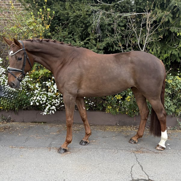 Fleur de Barcelona a été montée l'année dernière au printemps chez l'éleveur, puis envoyée dans un centre pour passer le test de performance des poulinières, qu'elle a brillamment réussi. Par la suite, elle devait être présentée en Dressage Pferde A, mais cela n'a pas été possible en raison de problèmes de comportement survenus. Elle est donc maintenant proposée à des mains expérimentées en tant que cheval avec des difficultés. Des radiographies des jambes, du dos et du cou sont disponibles. Pour plus d'informations, n'hésitez pas à me contacter par téléphone au 015140434875.