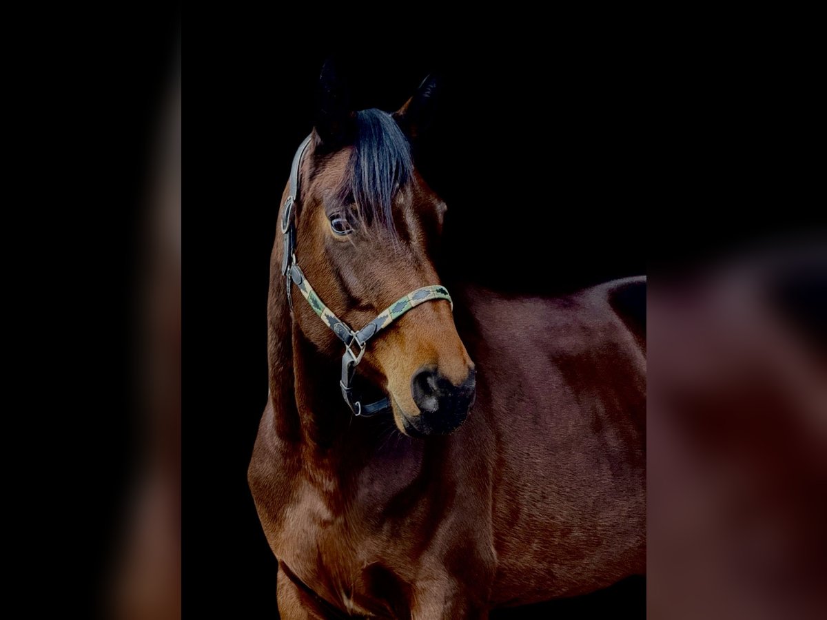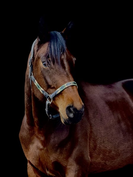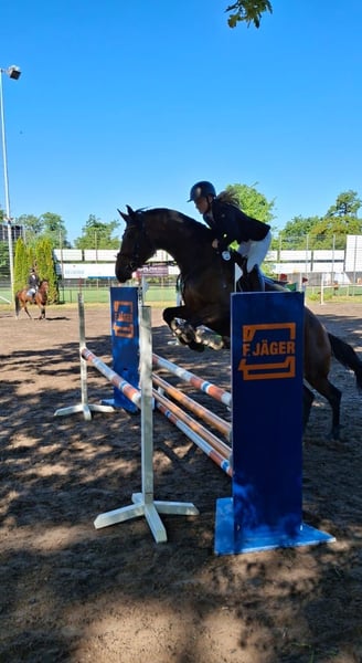 Filumena ist eine fünfjährige, schicke Stute direkt vom Züchter, die bislang schonend von einem Amateur-Mädchen ausgebildet und auch auf Turnieren vorgestellt wurde. Sie kennt verschiedene Reiter, zeigt sich im täglichen Umgang freundlich und unkompliziert und lässt sich problemlos verladen sowie brav beim Schmied und außerhalb des Stalls handeln. Unter dem Sattel ist sie ein feines Pferd, das mit einer ruhigen, elastischen Reiterhand am besten zur Geltung kommt. Sie reagiert sensibel auf Hilfen, bietet angenehme Grundgangarten und arbeitet bei klarer, unaufgeregter Einwirkung sehr schön mit. Im Gelände geht Filumena brav allein wie in der Gruppe und bleibt dabei gelassen und zuverlässig. Auch beim Springen zeigt sie Motivation und eine gute Übersicht, ohne dabei heiß zu werden. Insgesamt ist sie ein vielseitiges Amateurpferd mit viel Potenzial für jemanden, der ein sensibleres Pferd zu schätzen weiß. Standort ist Viernheim.